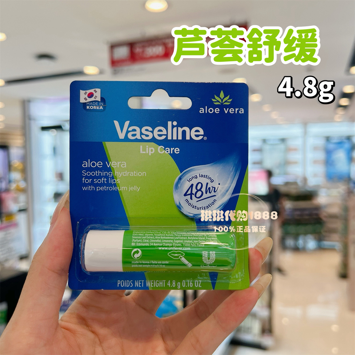 澳门购 Vaseline/凡士林经典滋养修护芦荟味润唇膏4.8g护唇膏滋润