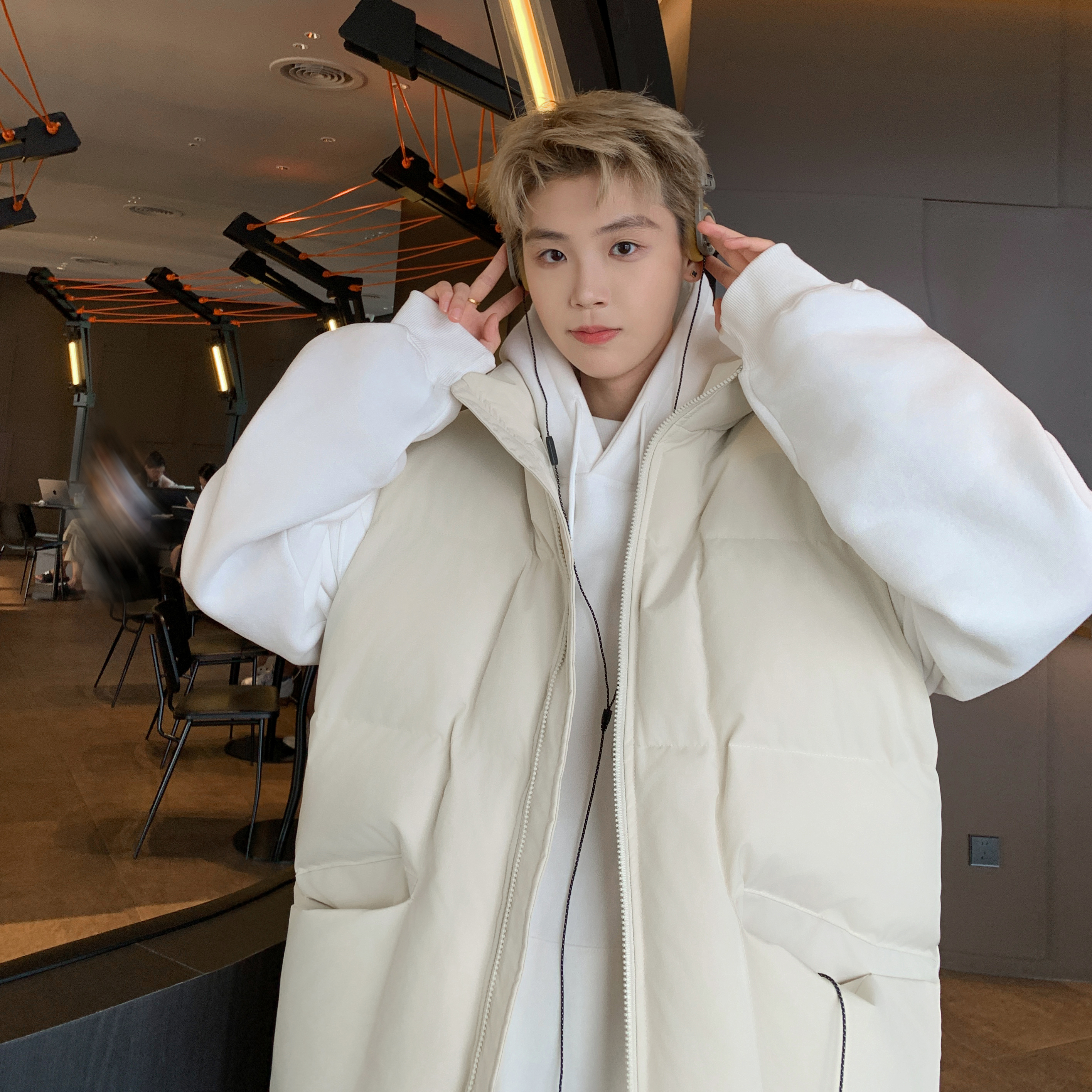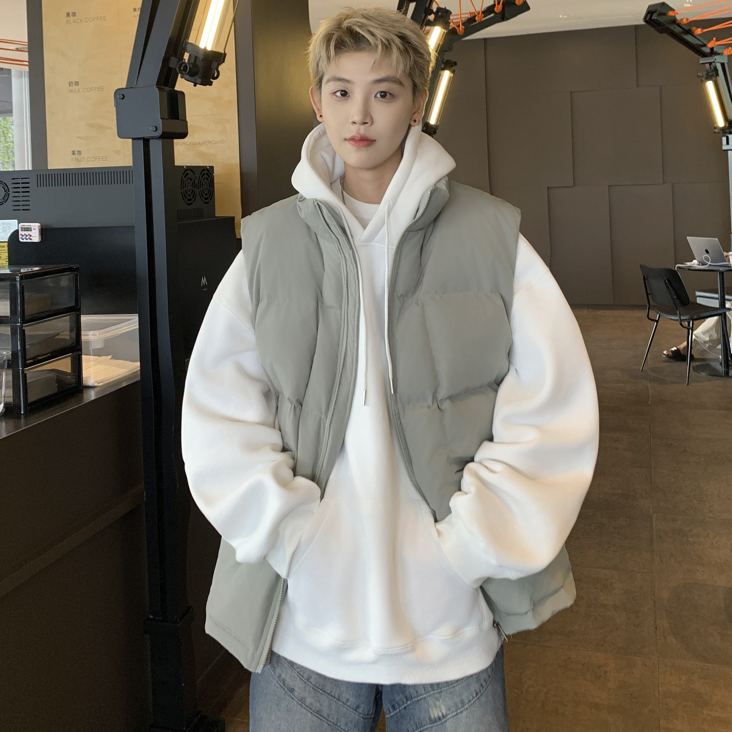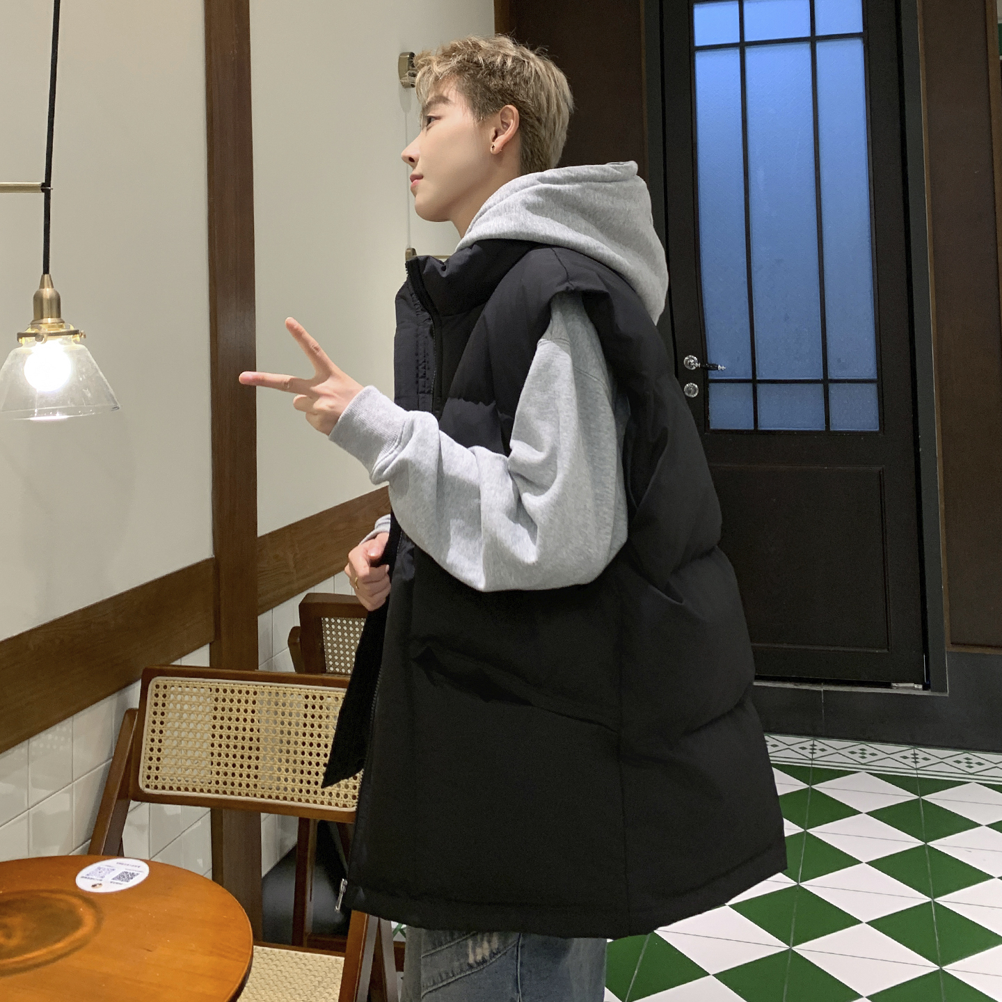 纯色工装夹棉马甲背心男加肥大码潮牌胖子宽松冬季无袖坎肩厚外套