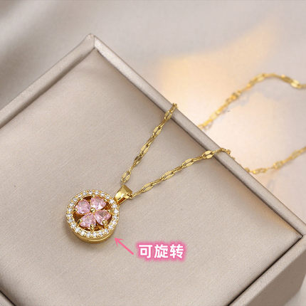 儿童项链女童公主小女孩女生旋转四叶草水晶宝石饰品宝宝闺蜜首饰