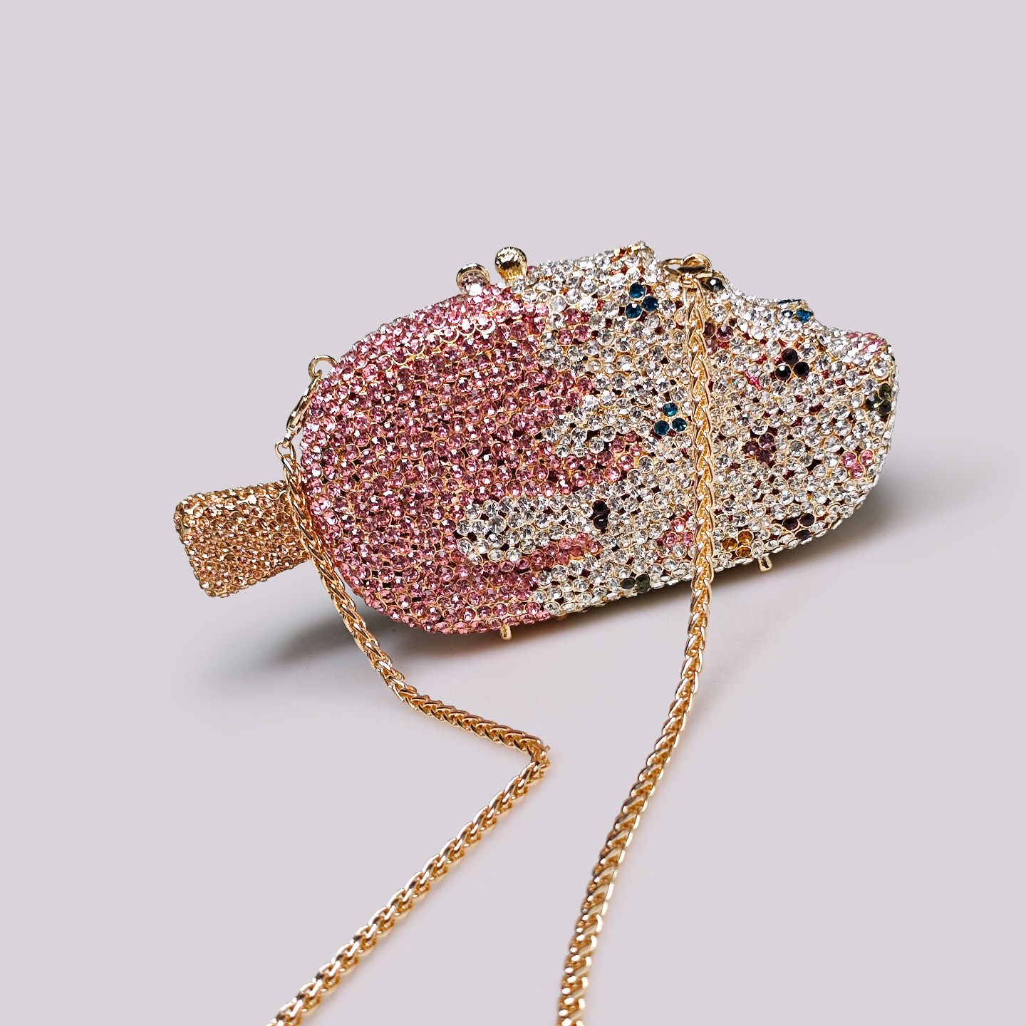 甜美可爱风手拿包轻奢晚宴礼服搭配的迷你包包精致水钻装饰口红包