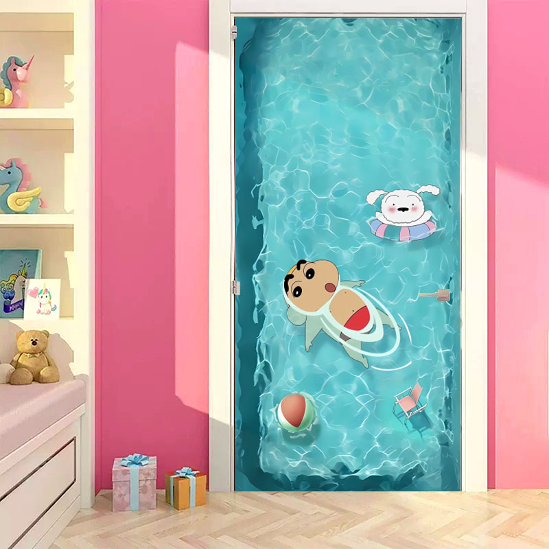蜡笔小新门贴纸儿童房装饰贴画卧室电梯柜门翻新自粘贴卡通墙贴