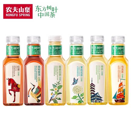 农夫山泉东方树叶陈皮白茶茉莉花茶乌龙茶普洱500ml装无糖茶饮料