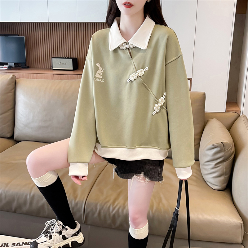 小个子翻领polo衫卫衣女春秋韩版大码宽松薄款拼色假两件上衣外套