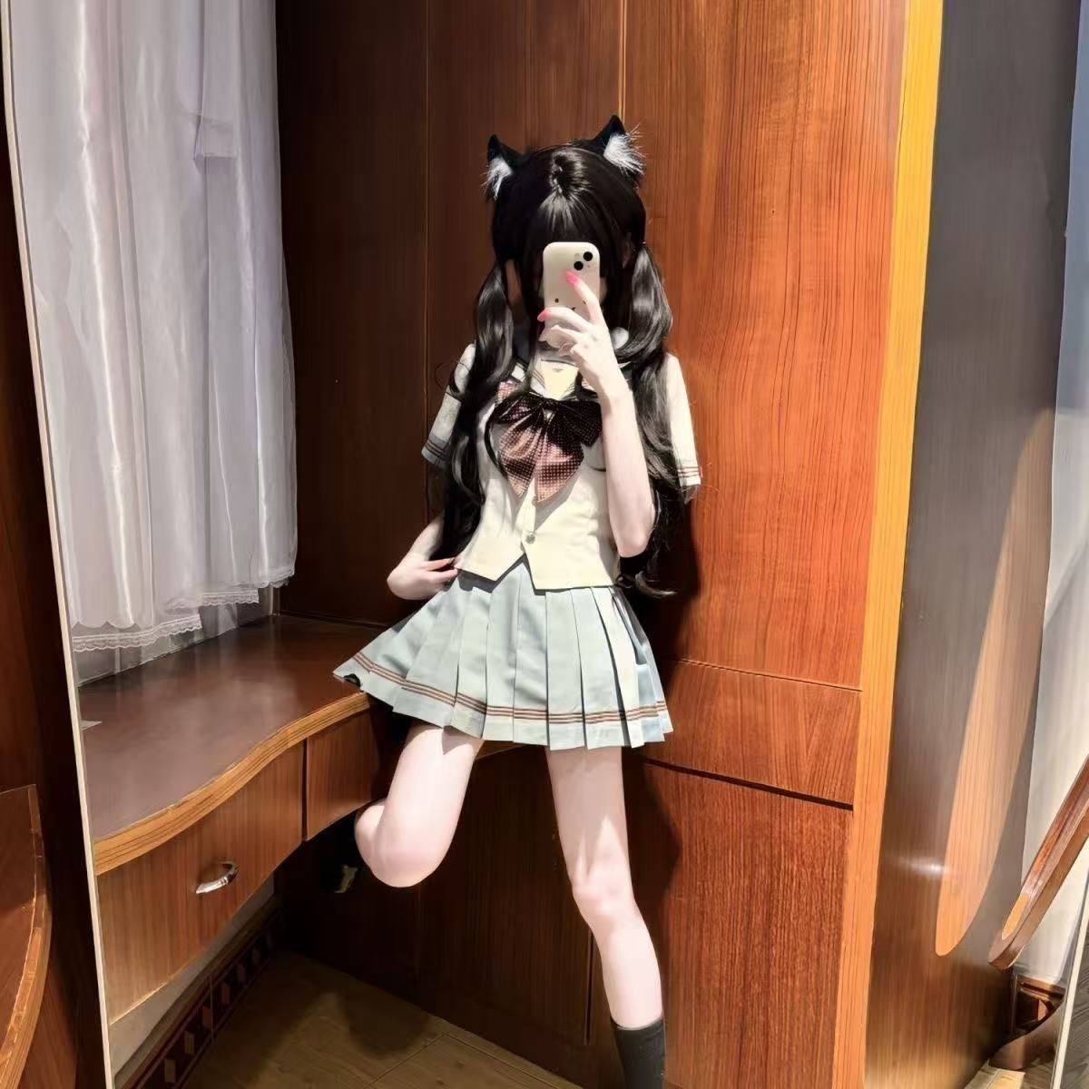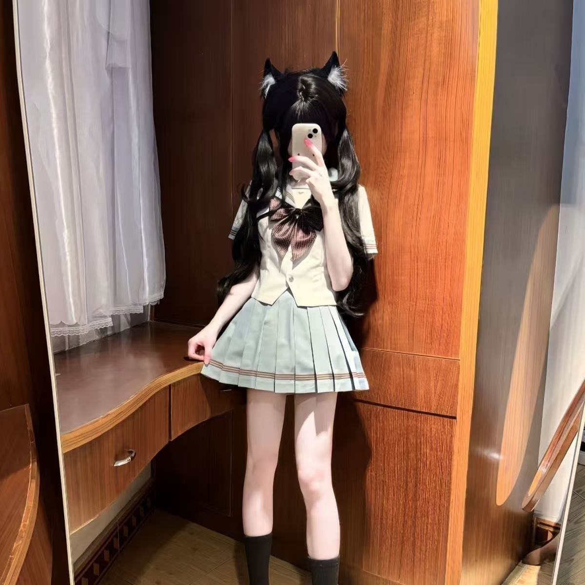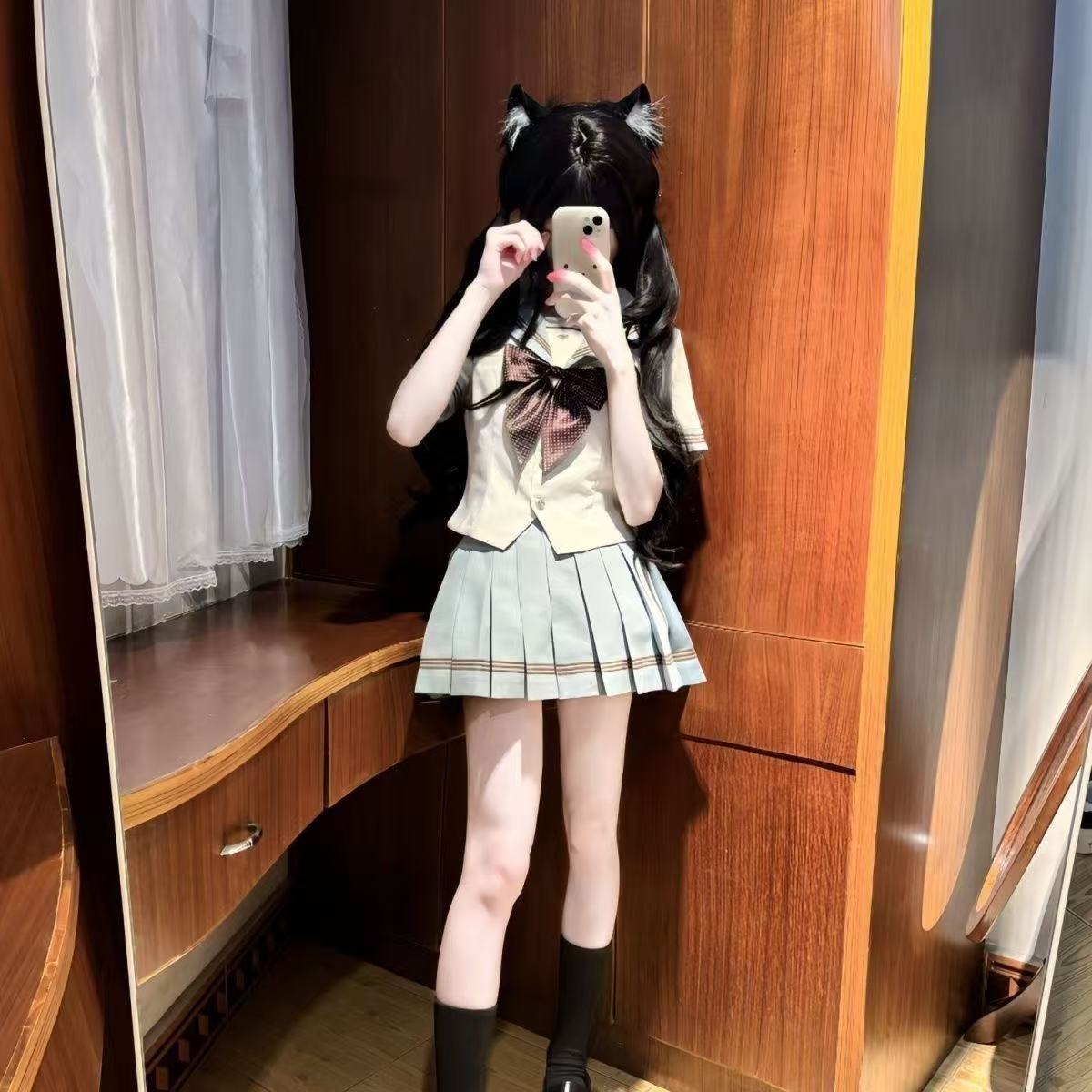 校供感jk制服甜美夏季海军蝴蝶结学院衬衫短袖百褶半身短裙套装