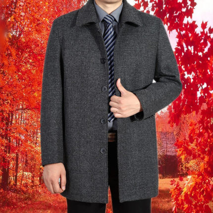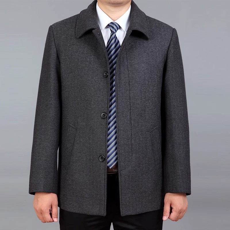 春秋季中老年人男士爸爸翻领夹克冬季中年男装加厚大衣外套加大码