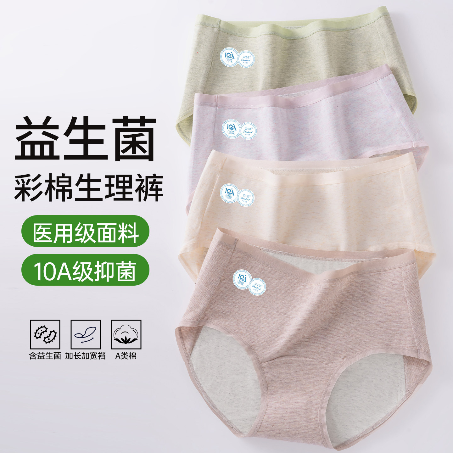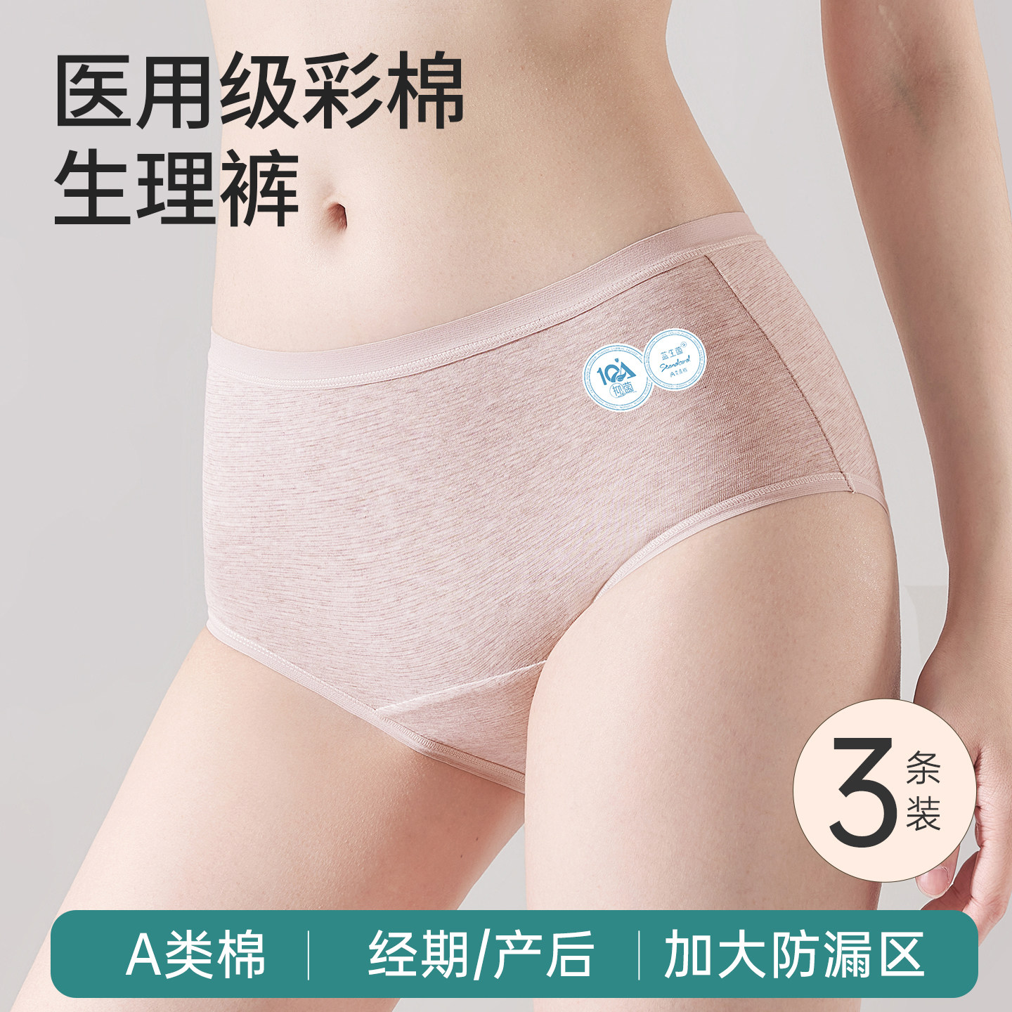 草本初色生理期内裤女士纯棉10A抑菌裆月经期加宽防漏卫生三角裤