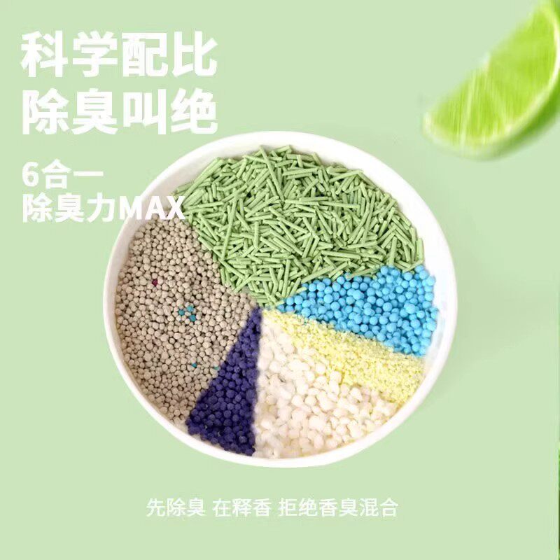 新品海盐青柠混合木薯豆腐膨润土猫砂结团低尘除臭抑菌结团不沾底