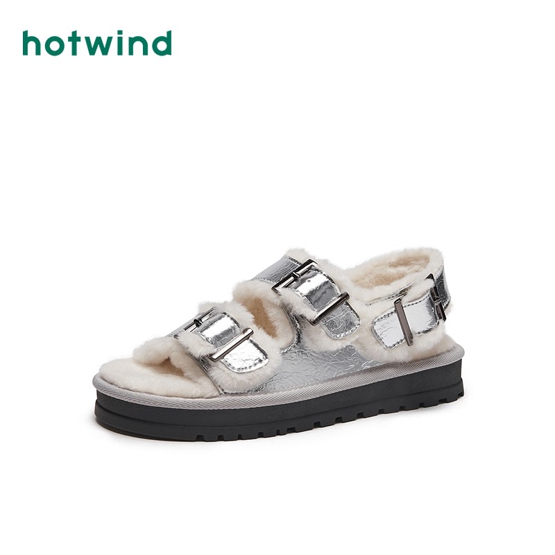 热风秋冬新款银色勃肯加绒凉鞋女舒适毛绒家居鞋女鞋毛毛鞋