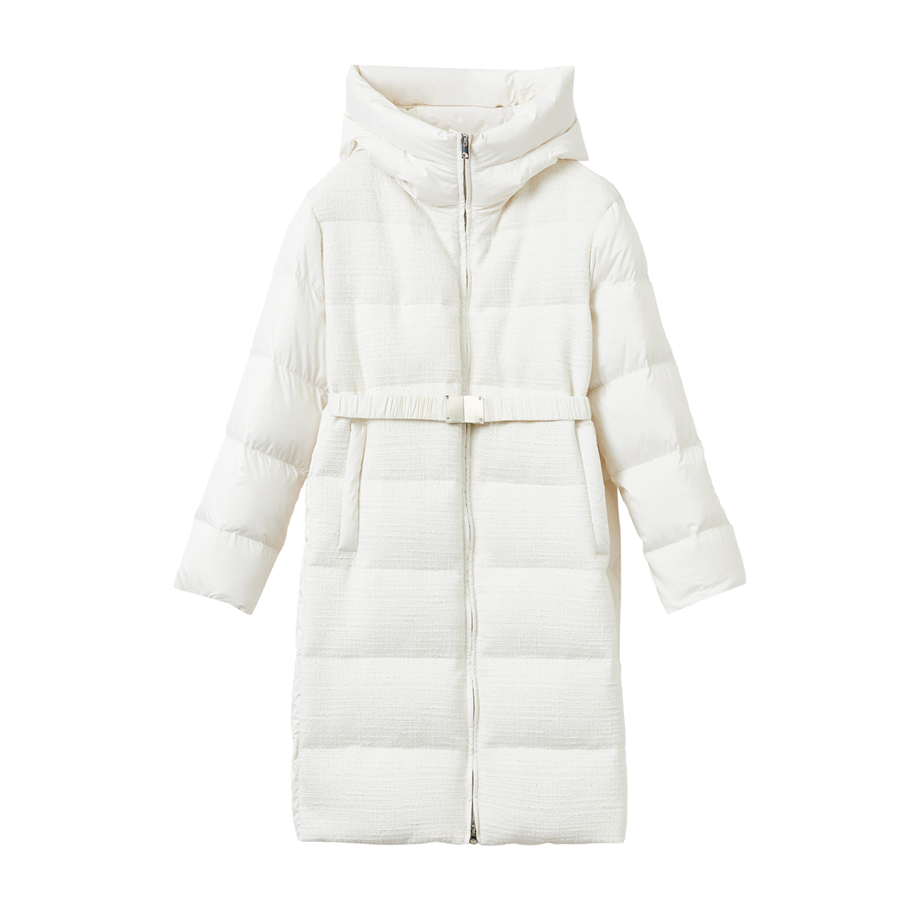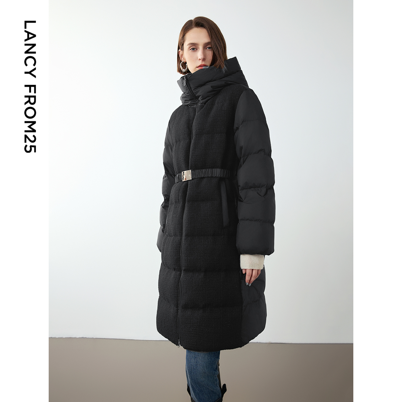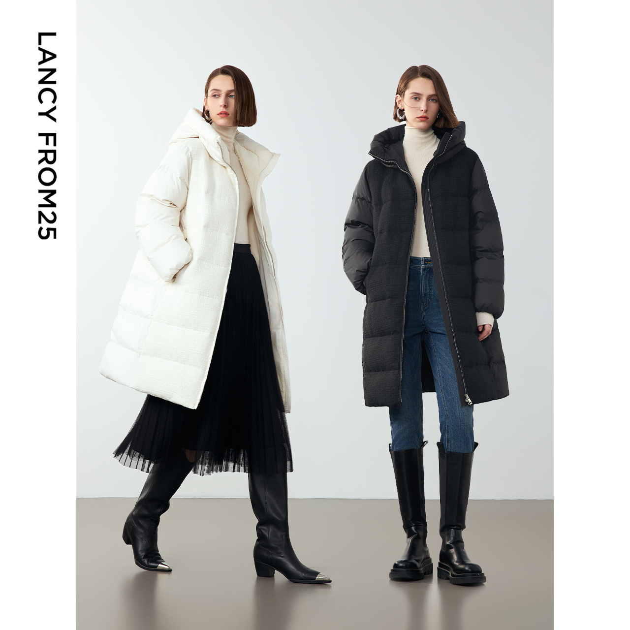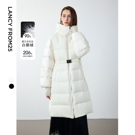 朗姿霍尔多巴吉白鹅绒中长款修身气质连帽女外套2024冬新款羽绒服