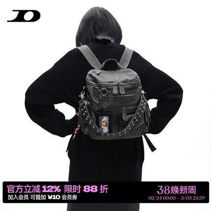 简着 /原创 小号里斯林肯古锈绿多口袋辣妹铆钉机车Y2K单肩双肩包
