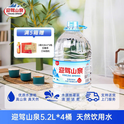 迎驾山泉5.2L*4桶天然弱碱性饮用水桶装水居家办公泡茶水大桶水