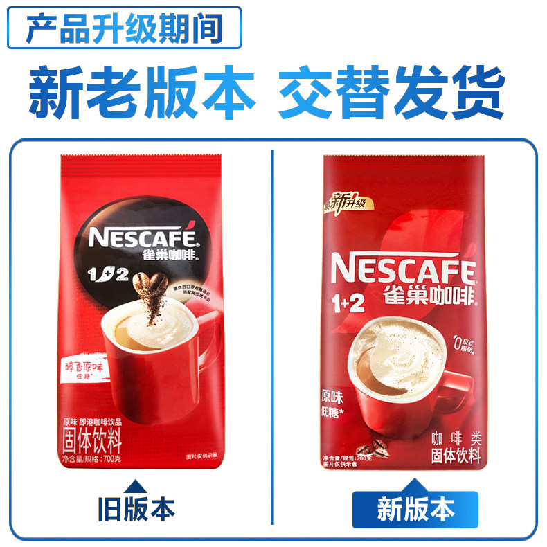 雀巢醇香原味咖啡1+2袋装700g克/袋装三合一速溶咖啡粉