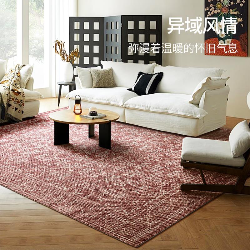 视觉味道 复古客厅羊毛地毯中古红色法式波西米亚编织高级感ins风