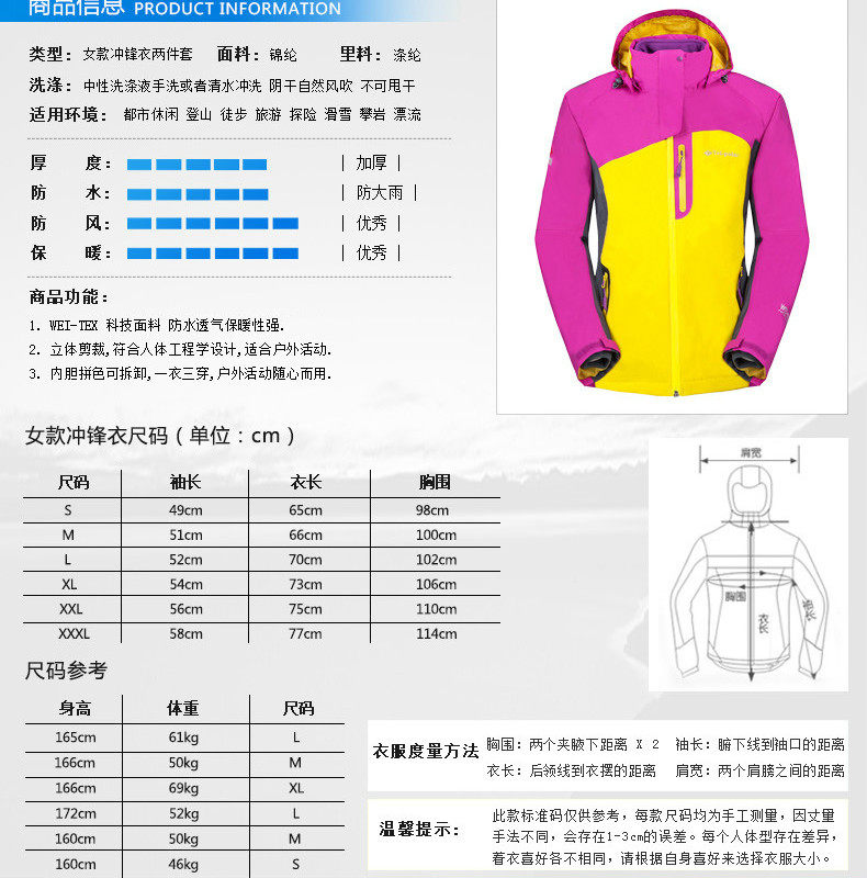 冲锋衣女秋冬季可拆卸抓绒防潮旅游登山服冲锋衣女三合一两件套装