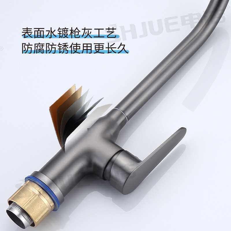 厨房全铜枪灰冷热防溅水龙头家用洗菜盆水槽可旋转洗碗池高仪同款