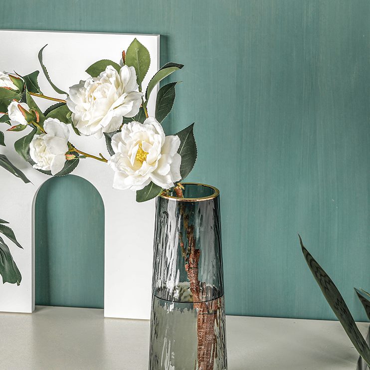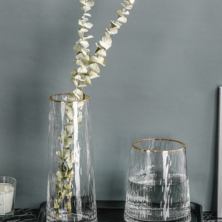 水养富贵竹描金花瓶透明玻璃百合简约装饰品北欧轻奢客厅摆件插花