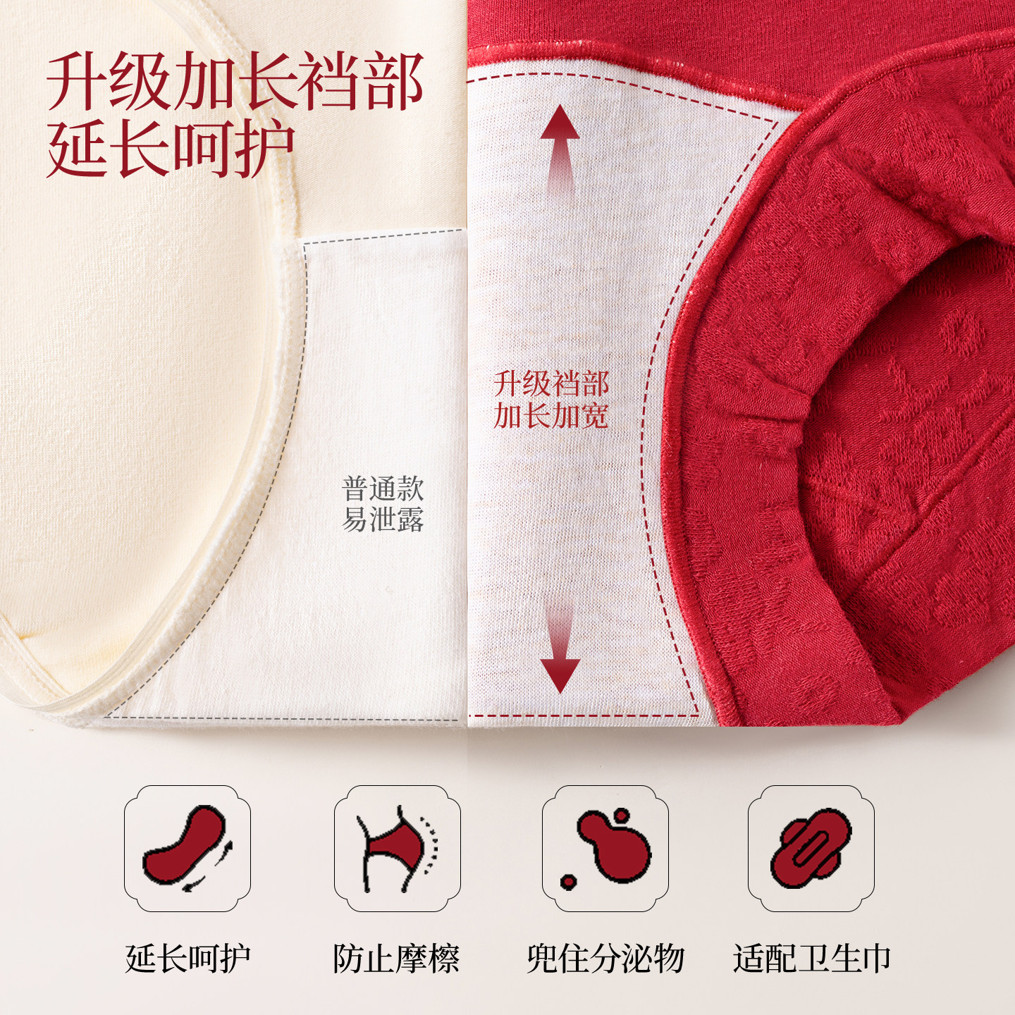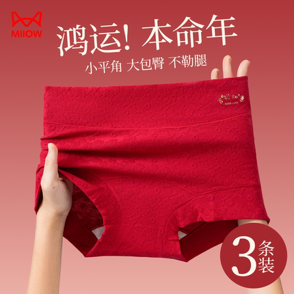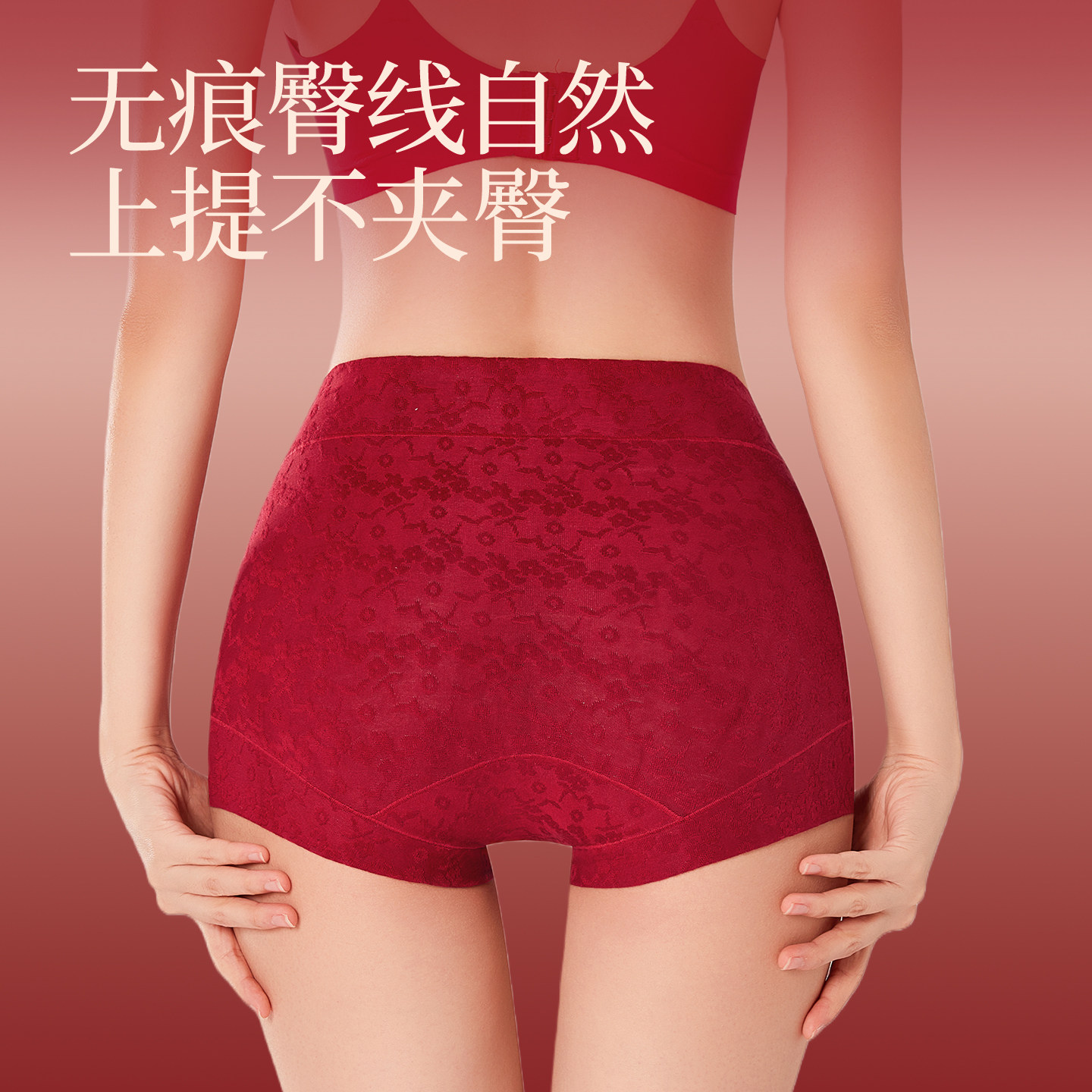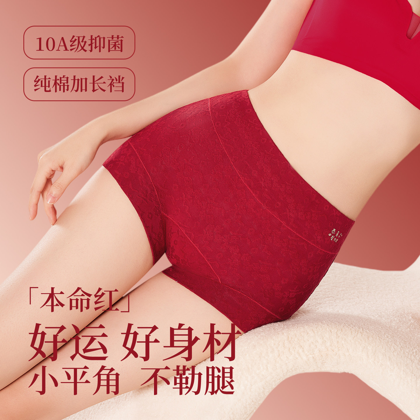 猫人内裤女2025新款纯棉高腰收腹抑菌加长档结婚订婚红色平角短裤