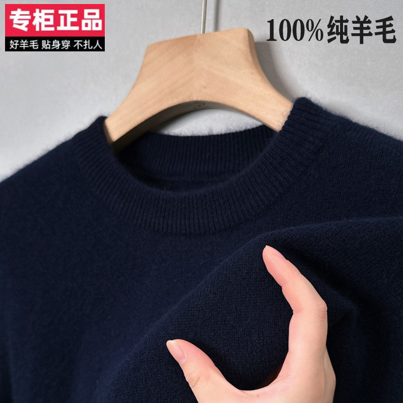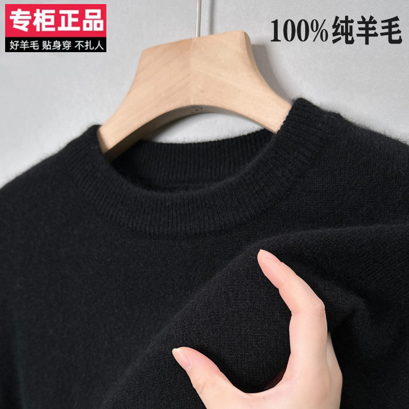 鄂尔多斯市100%纯羊毛衫男秋冬季圆领宽松毛衣加厚保暖羊绒打底衫