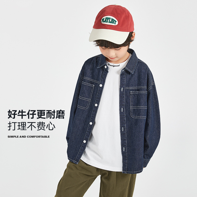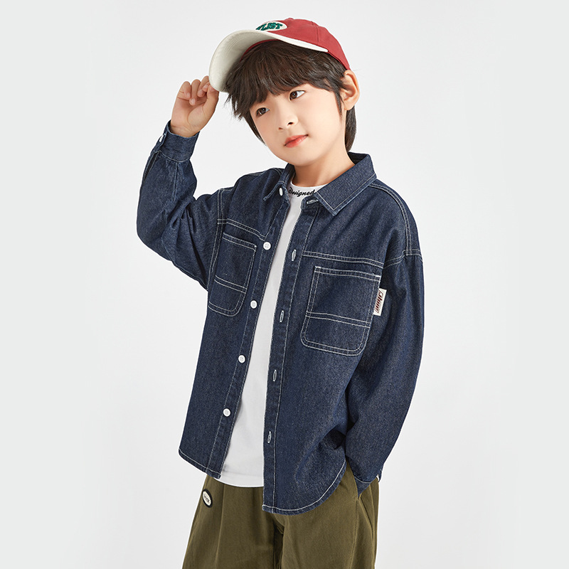 童装男童牛仔衬衫儿童秋季外套男孩大童洋气长袖韩版衬衣秋装