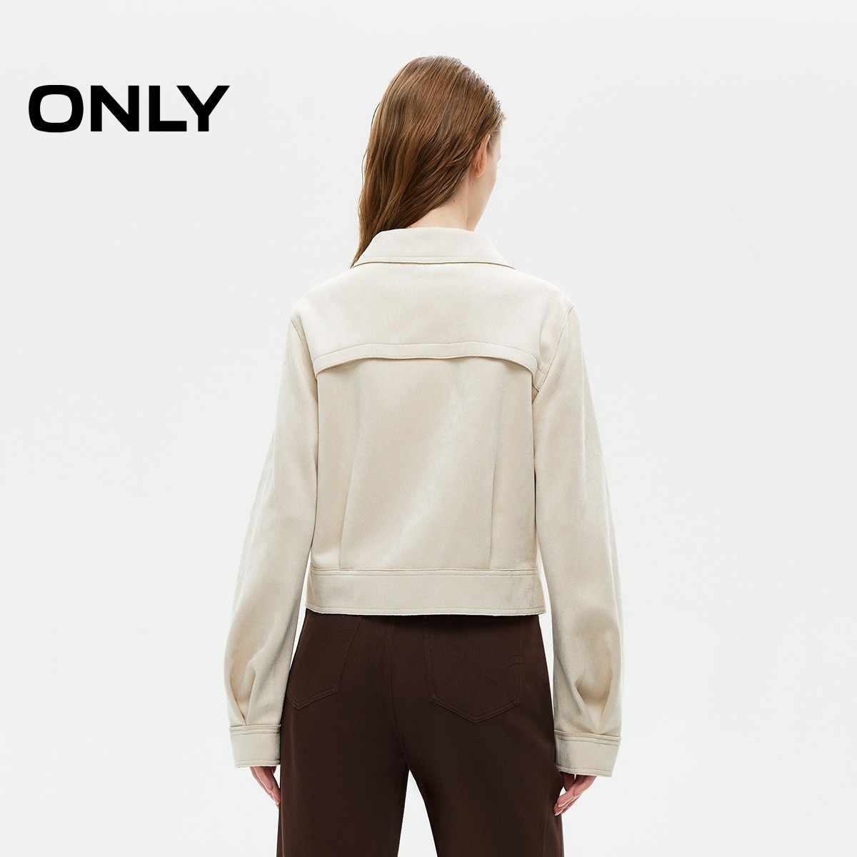 ONLY2025冬季新款翻领正肩软雕塑通勤风夹克风衣外套女|125436015