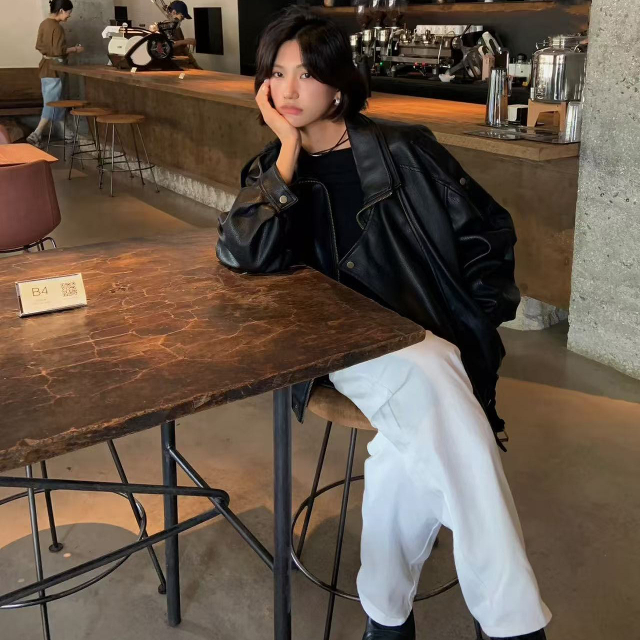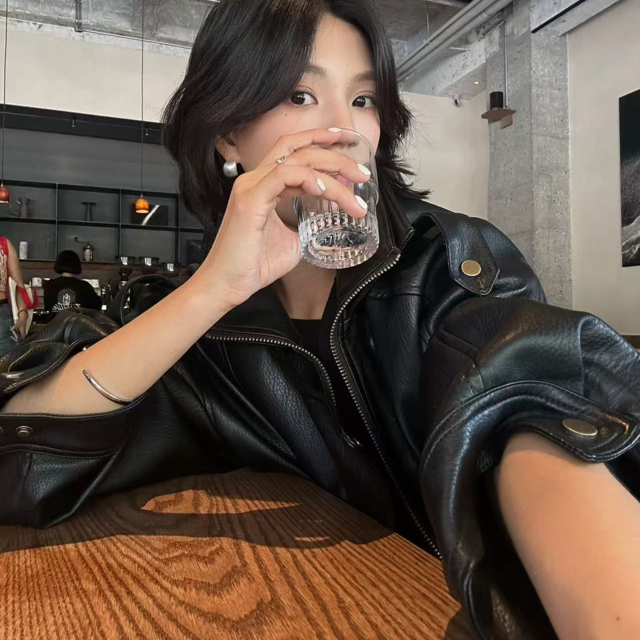 美式复古黑色机车服短外套女春秋高级感翻领痞帅工装pu皮夹克上衣
