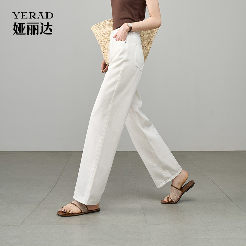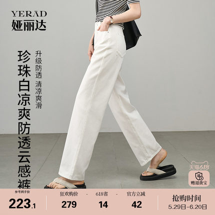 珍珠白凉爽云感裤娅丽达莱赛尔直筒阔腿牛仔裤夏季新款白色女裤子