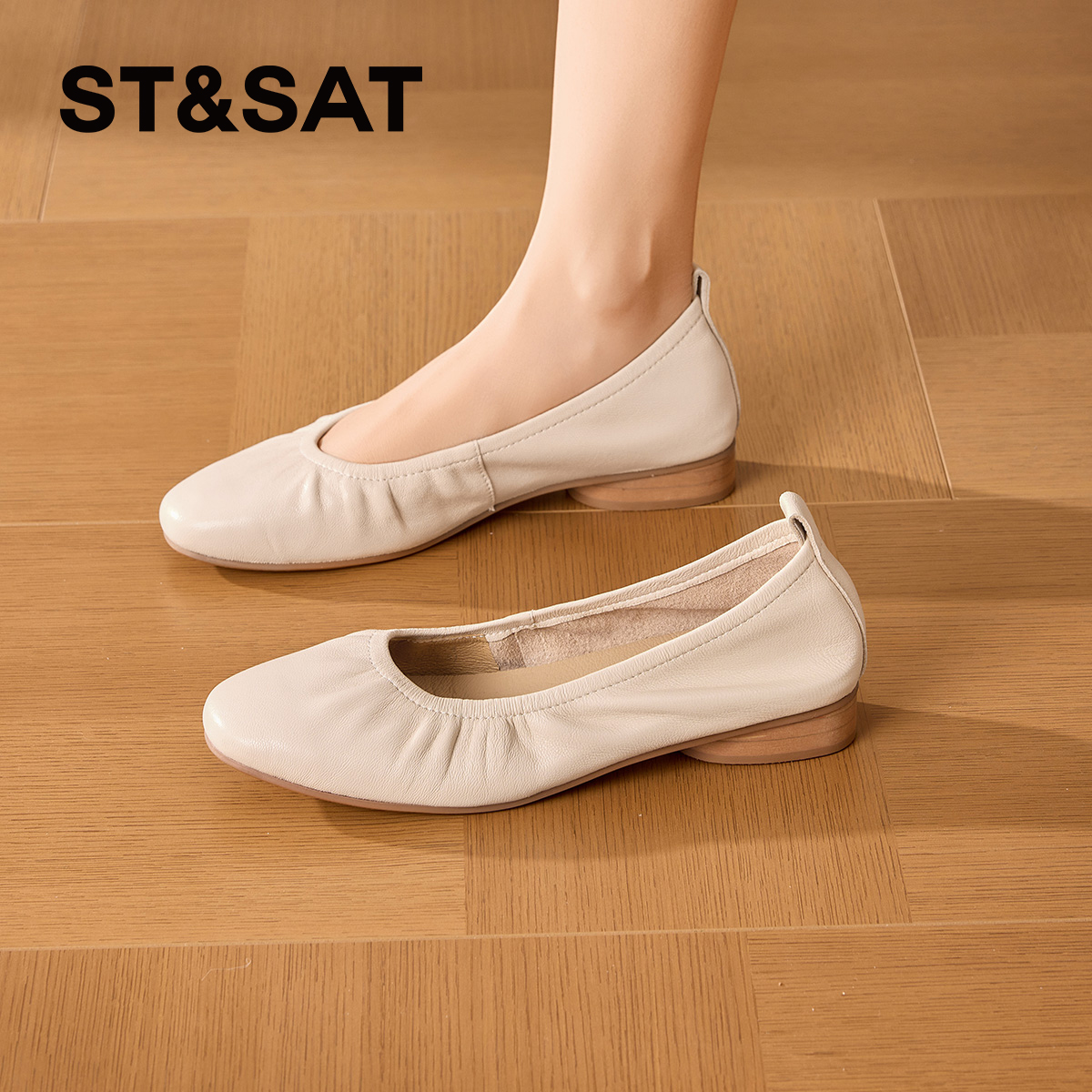 星期六真皮浅口单鞋2025新款法式低跟女鞋一脚蹬不累脚软底奶奶鞋