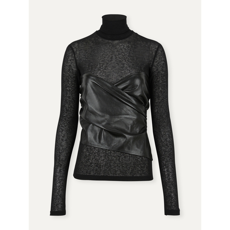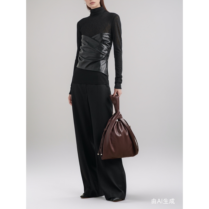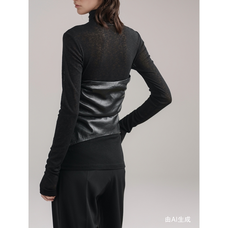 【折扣】Nanushka 秋冬女分层式皮革针织高领打底衫上衣