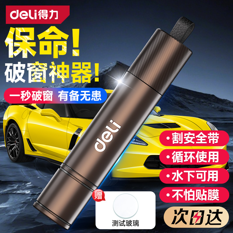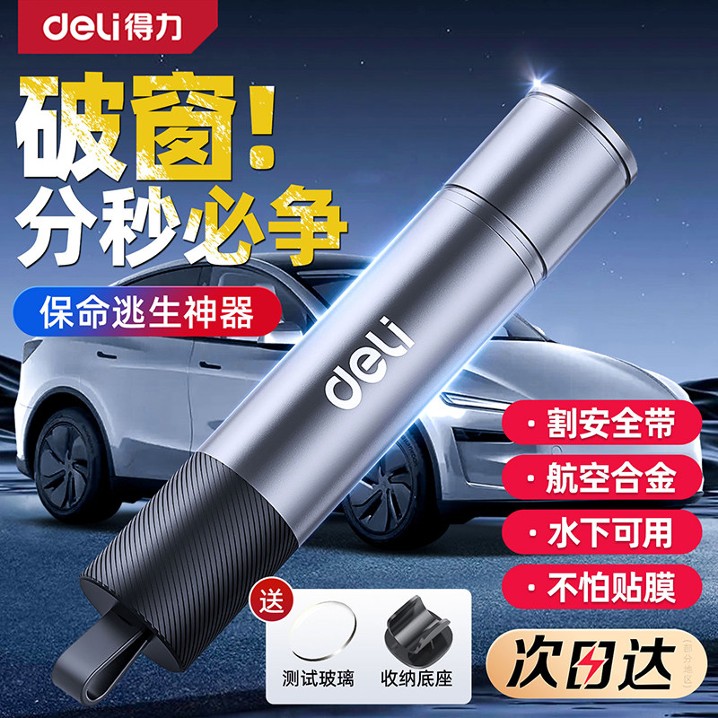 得力汽车破窗器车载安全锤多功能逃生神器四合一带割刀碎玻璃用救