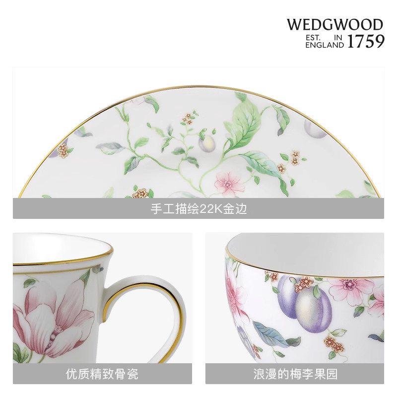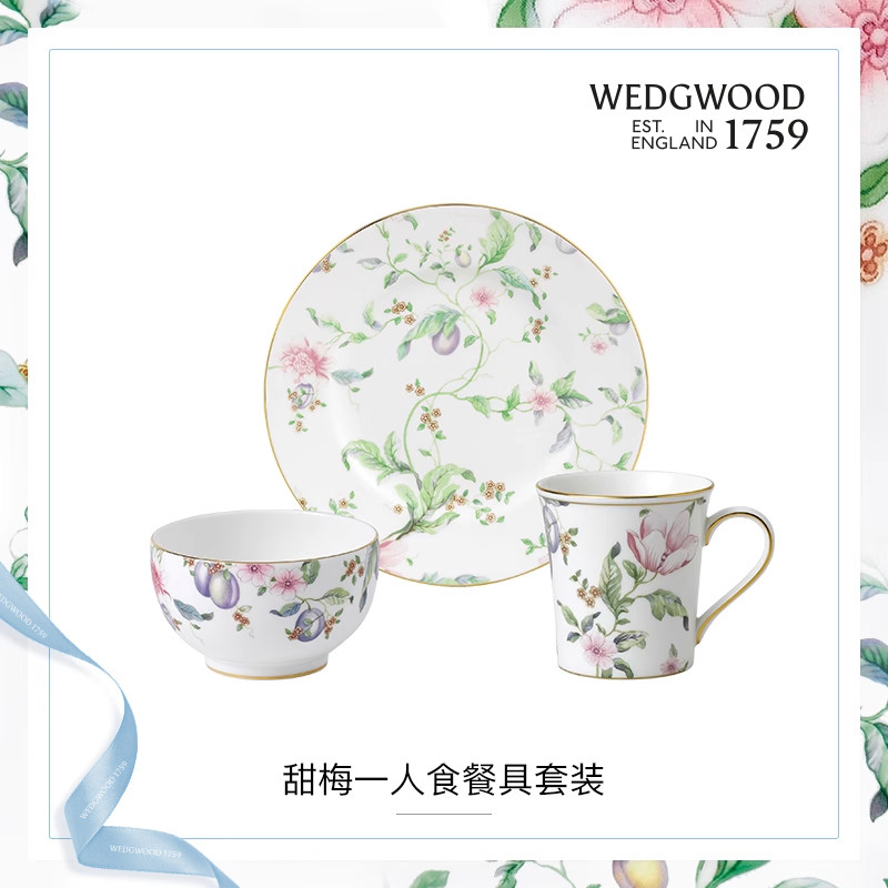 【秒杀】WEDGWOOD威基伍德甜梅一人食骨瓷碗盘马克杯3件组