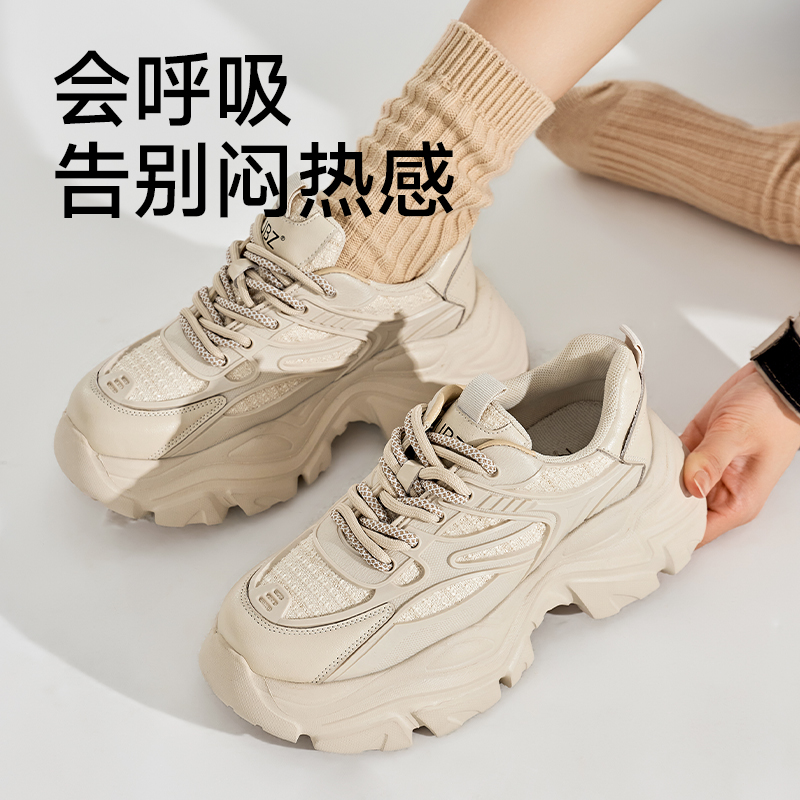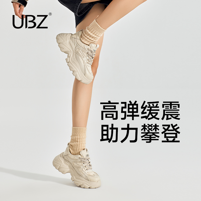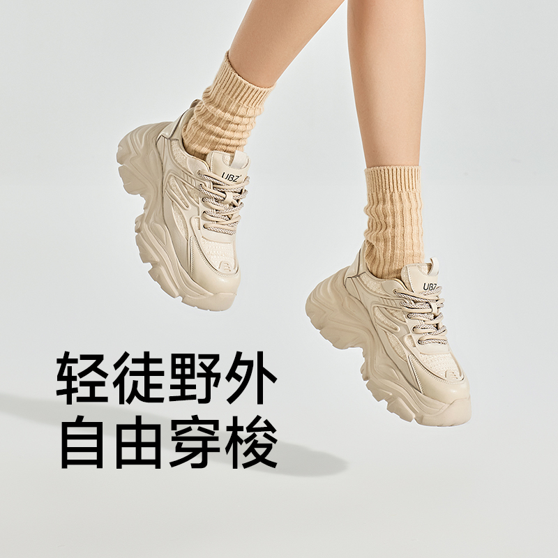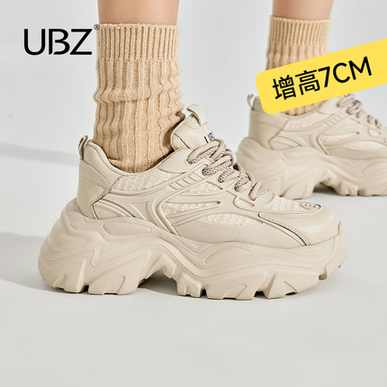 UBZ 防水厚底老爹鞋女2025秋季新款增高时尚百搭休闲运动鞋小白鞋