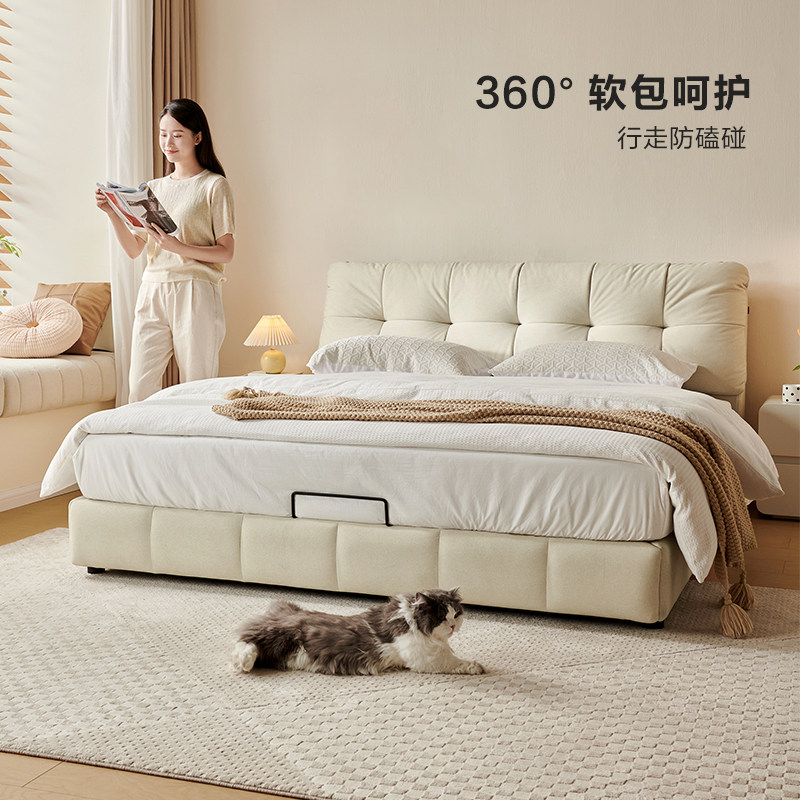 政府补贴全友家居奶油系床女生主卧室家具1米8双人大床猫爪布艺床