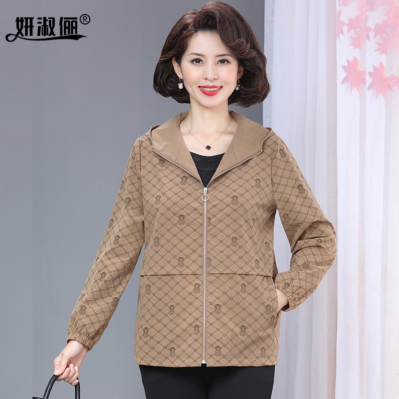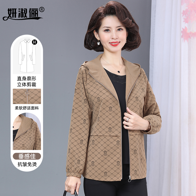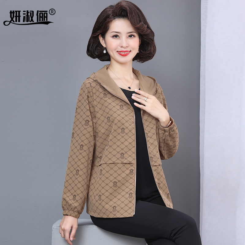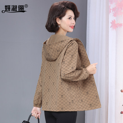 中老年女装高档洋气短款上衣轻薄外套休闲中年妈妈春秋连帽短风衣