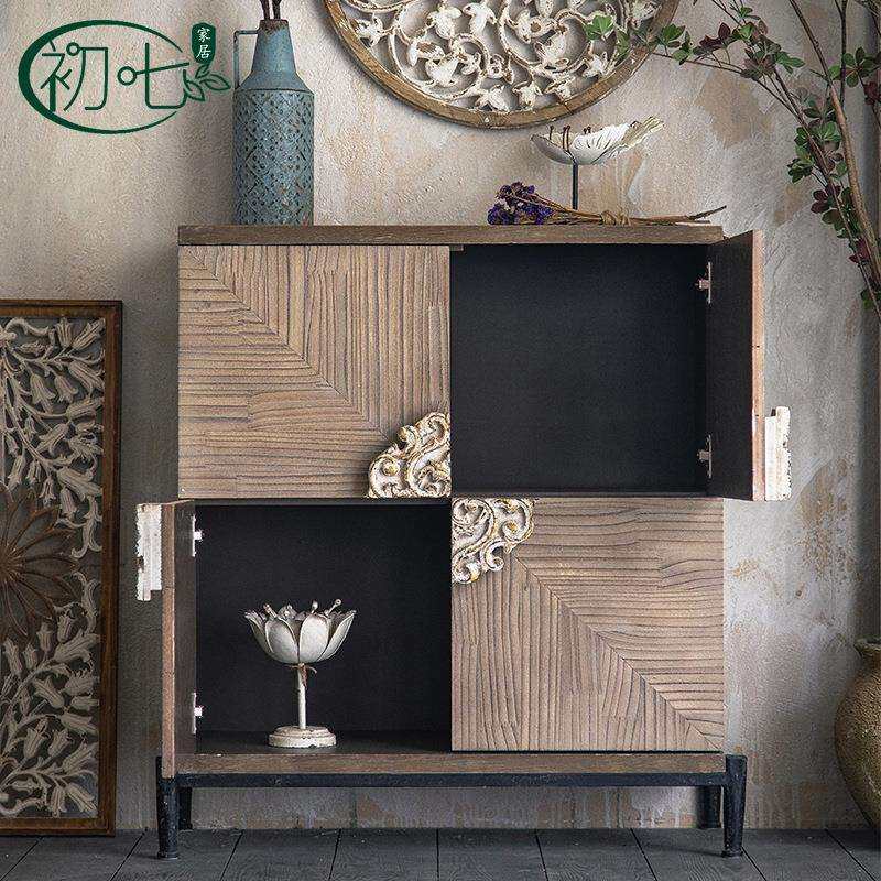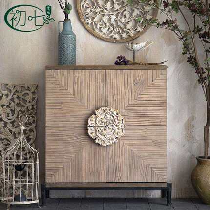 新中式实木做旧玄关柜民宿成套家具复古装饰柜客厅厨房餐边柜子