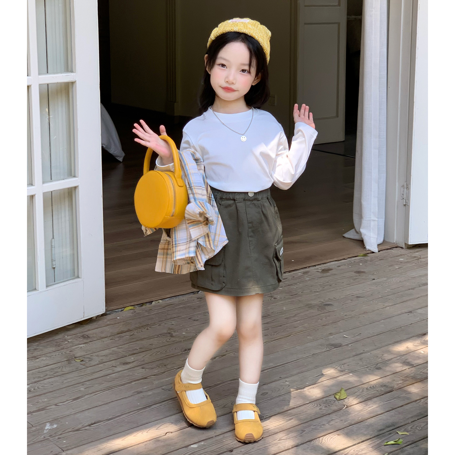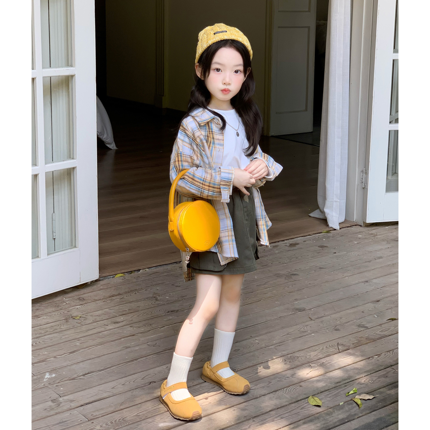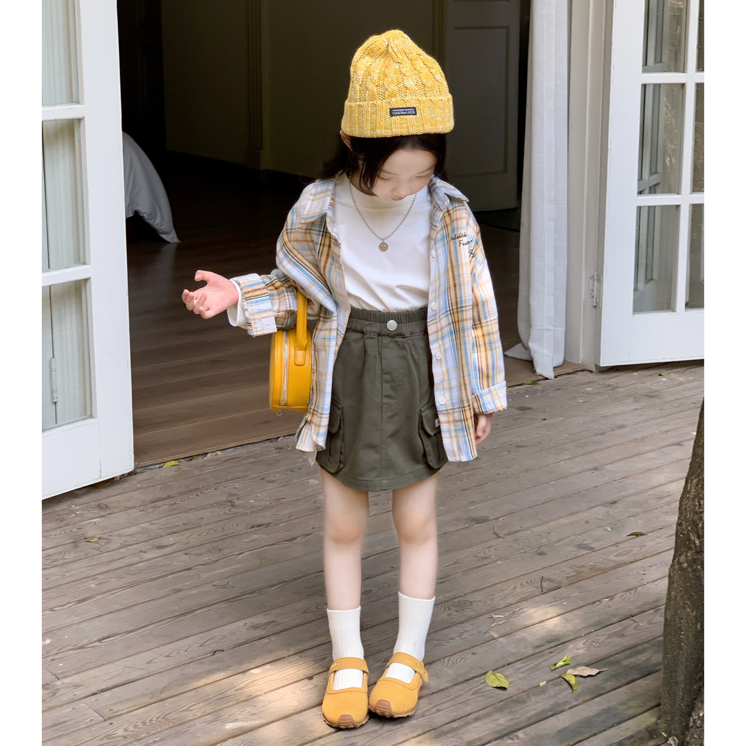 女童卡通格子衬衫秋装衬衣套装