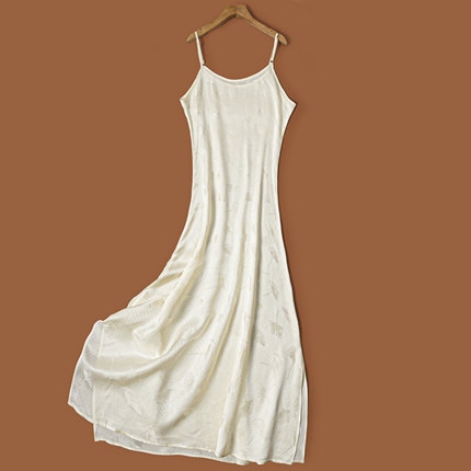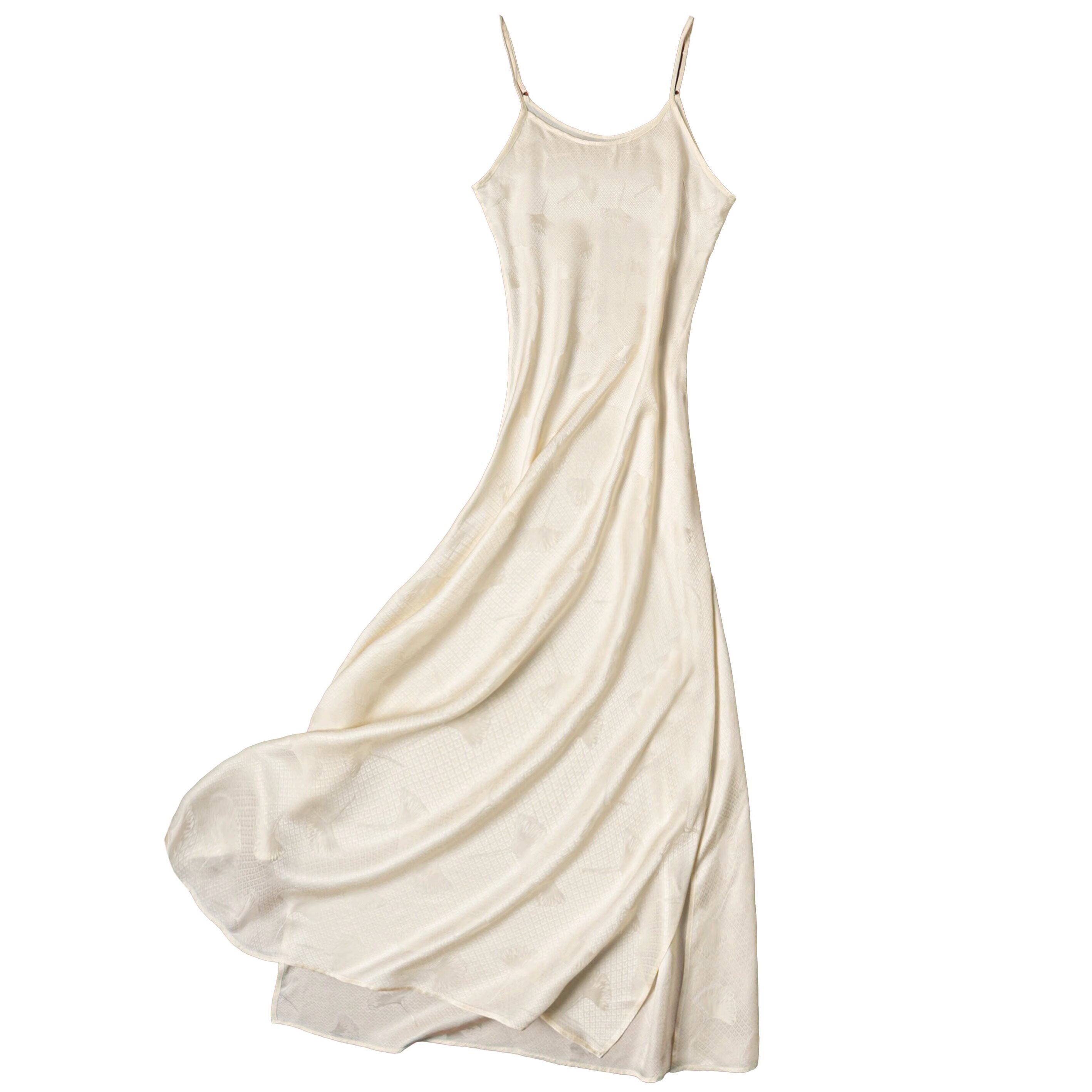 银杏叶提花花罗!桑蚕丝背心吊带连衣裙真丝A字裙纯色女夏打底裙