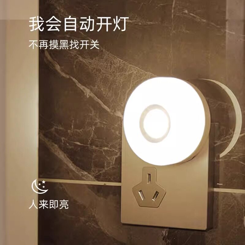 插电人体智能感应灯家用过道插座灯夜间起夜卫生间自动夜灯卧室灯