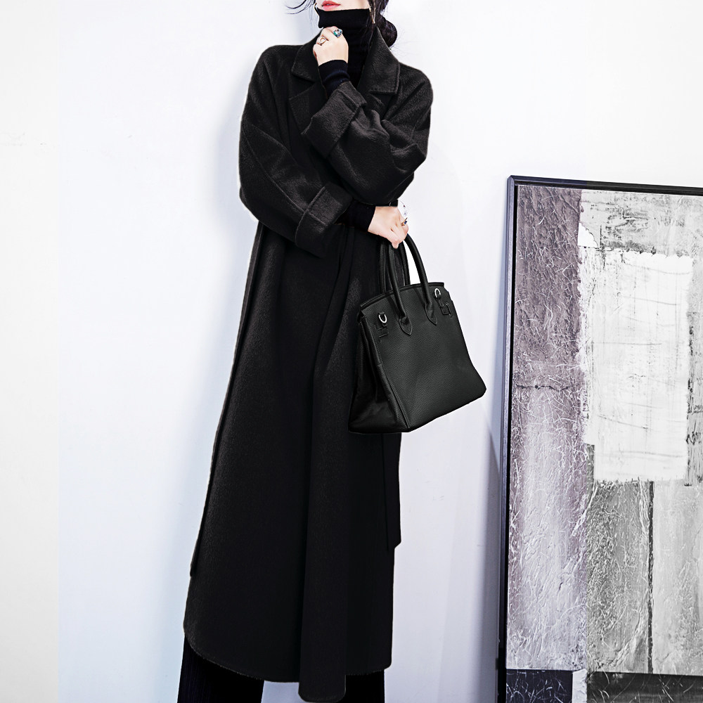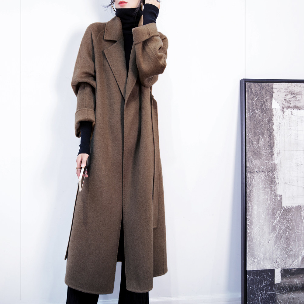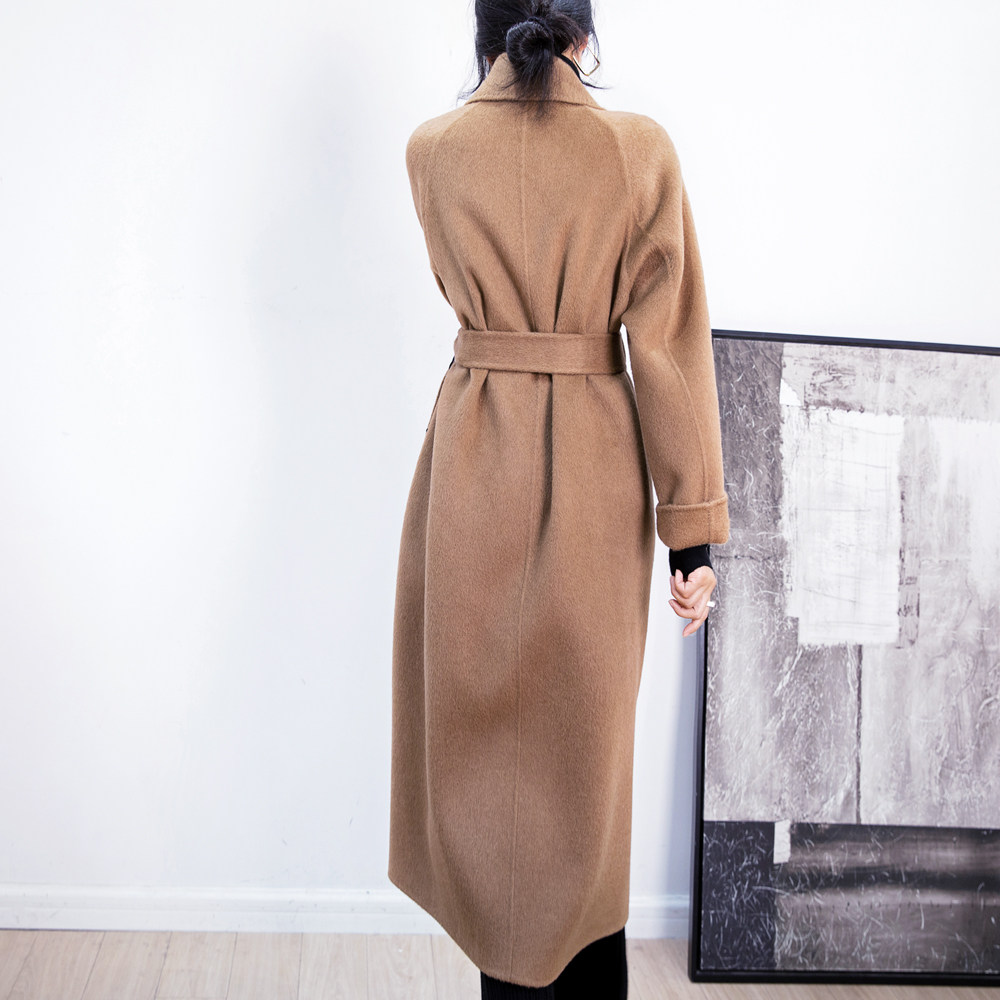 双面呢子羊绒大衣女中长款收腰系带加厚双面羊绒呢大衣女毛呢外套