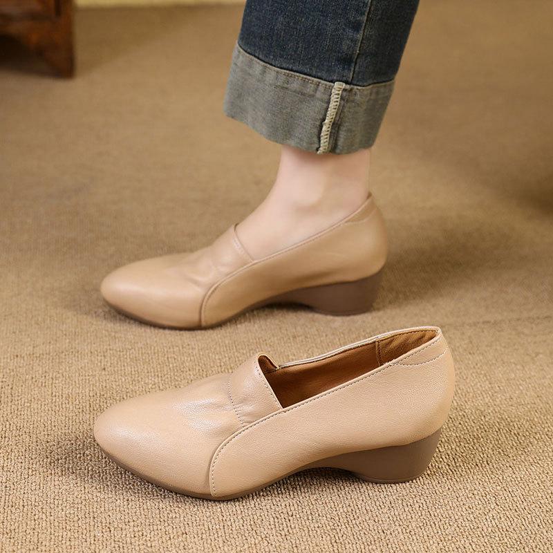 单鞋女2025年夏季新款一脚蹬粗跟不累脚皮鞋百搭舒适懒人鞋中跟