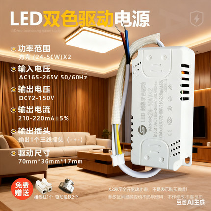 非隔离24-50*2W吸顶灯双色恒流led驱动电源三色分段控制整流器24W