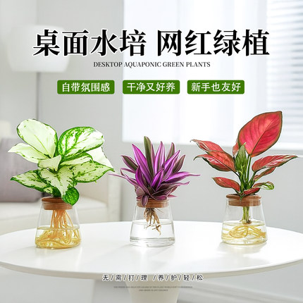 水培植物春羽绿萝紫露兰摆件办公室内桌面小绿植盆栽好养净化空气