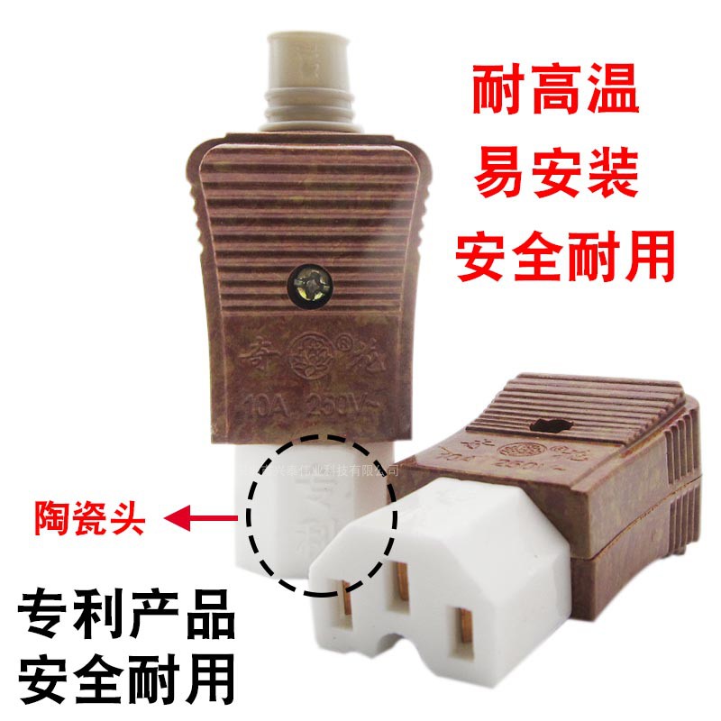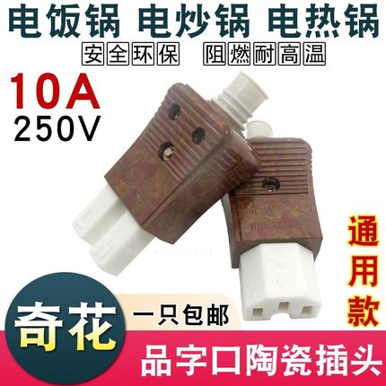 通用电饭锅品字插头电水壶电炒锅豆浆机电源线三孔插头陶瓷口包邮