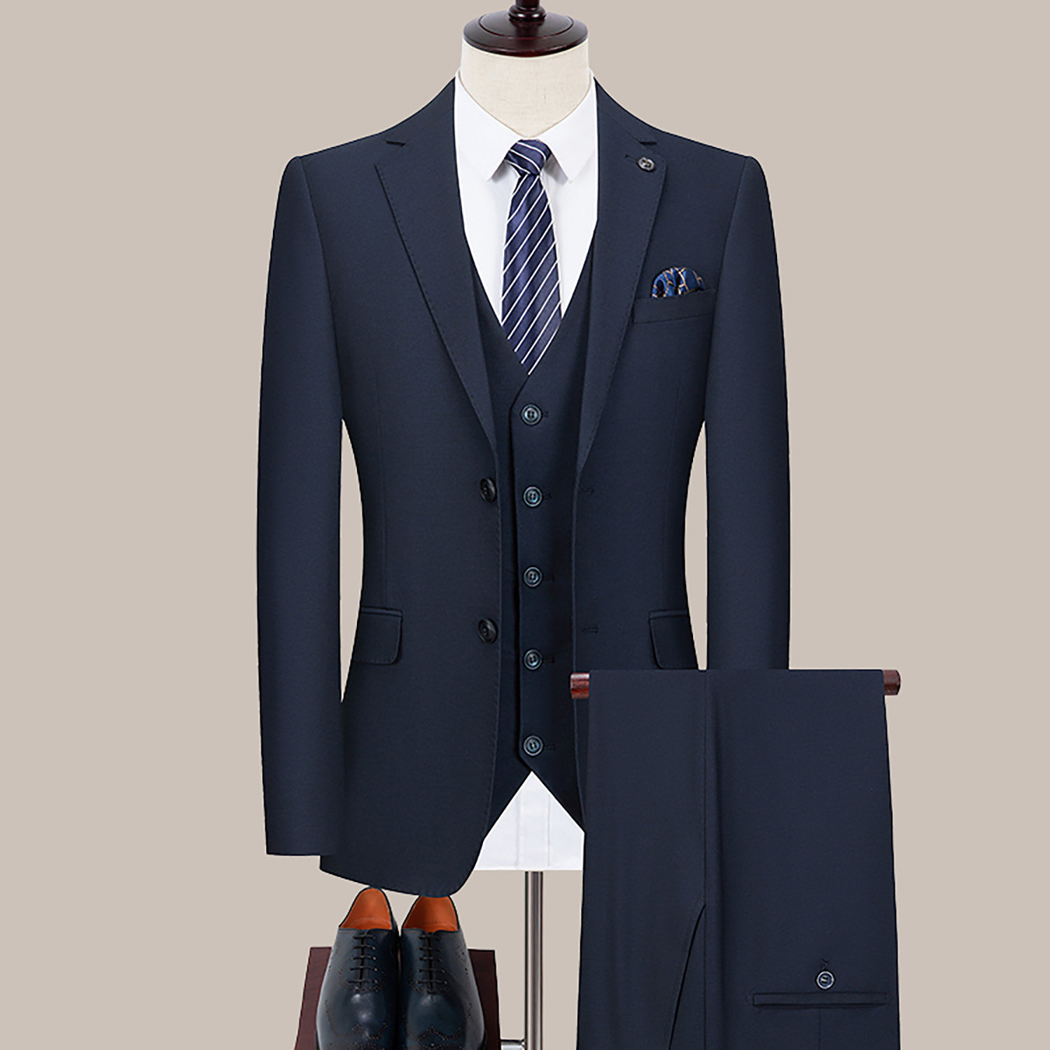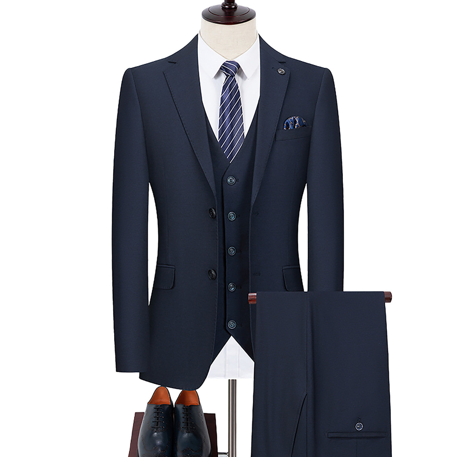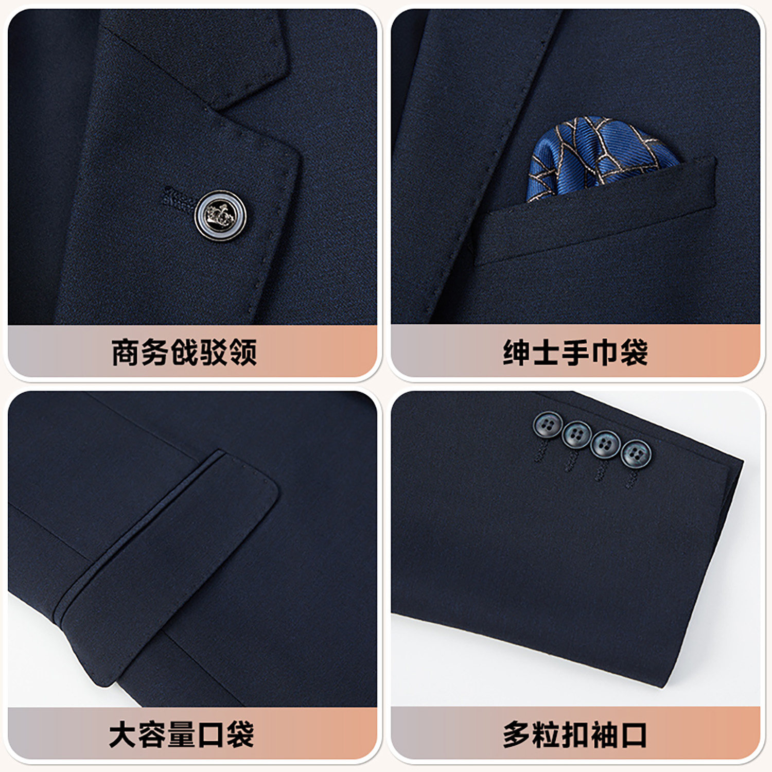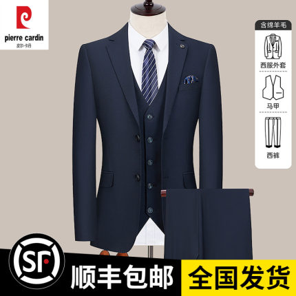皮尔卡丹羊毛西服套装男士商务休闲韩版修身职业正装新郎结婚礼服
