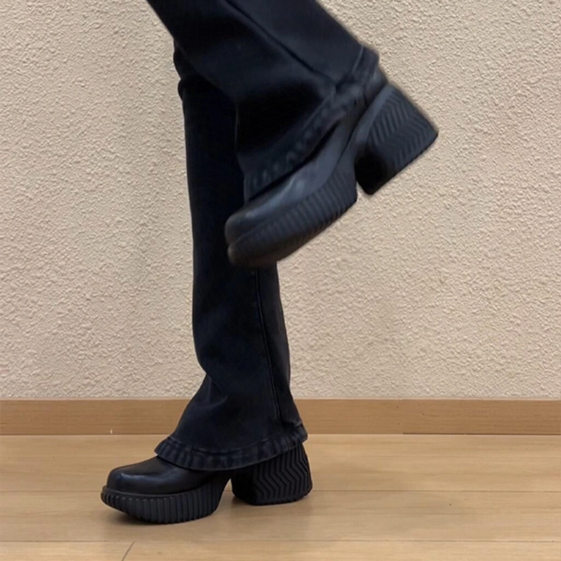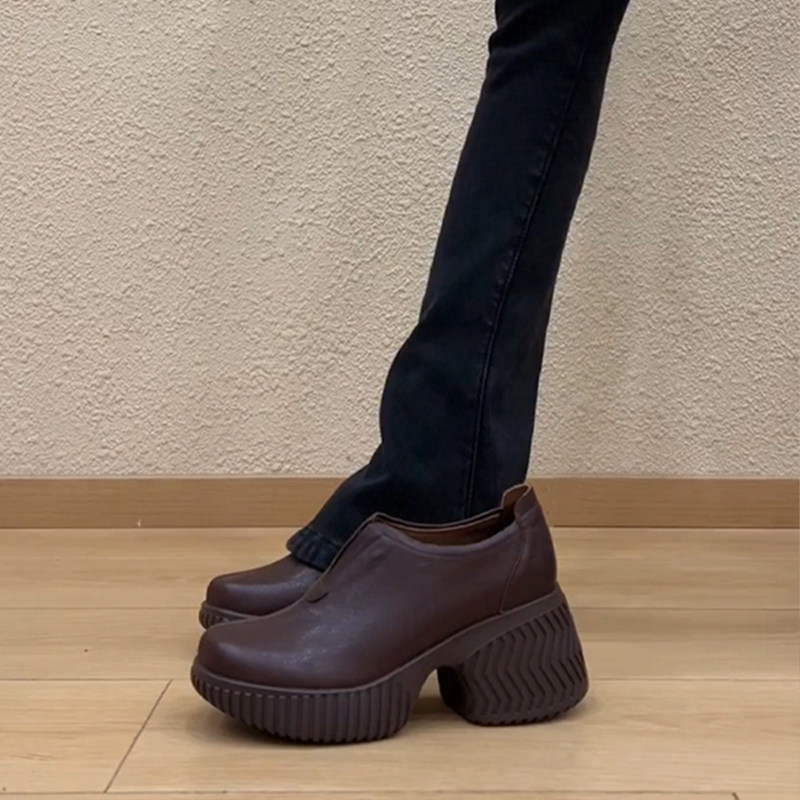 羊皮版~真皮厚底增高7.5cm圆头乐福鞋女百搭英伦风通勤小皮鞋单鞋