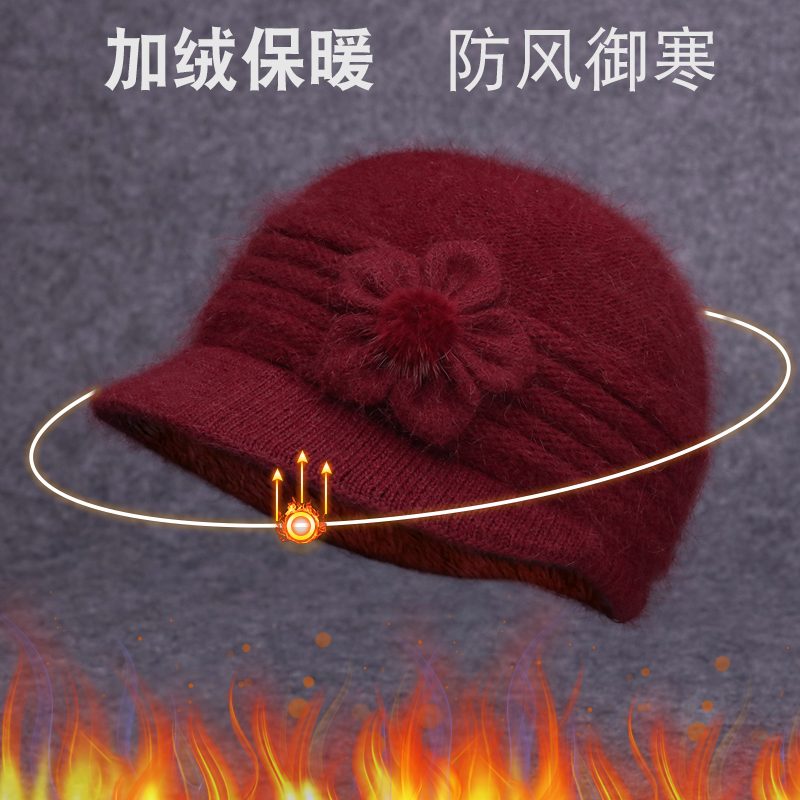 中老年人妈妈毛线保暖帽秋冬季老人帽子女奶奶老太太棉帽冬天围巾