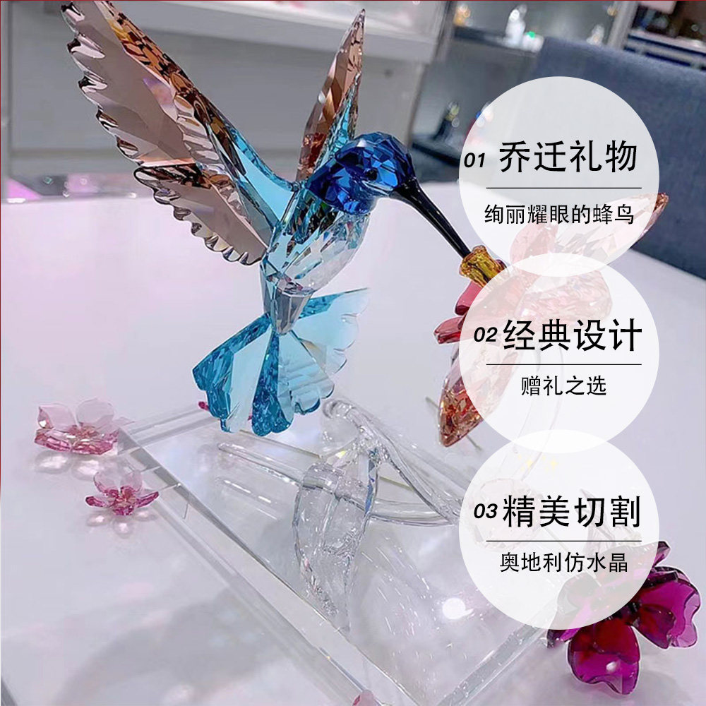 【自营】施华洛世奇摆件蜂鸟和花朵家居装饰长辈送女友节日礼物