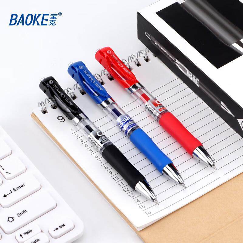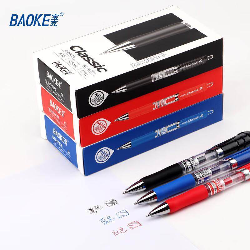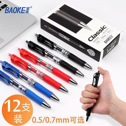 宝克A35按动中性笔 学生子弹头0.5mm按压式墨蓝黑红色水性签字笔