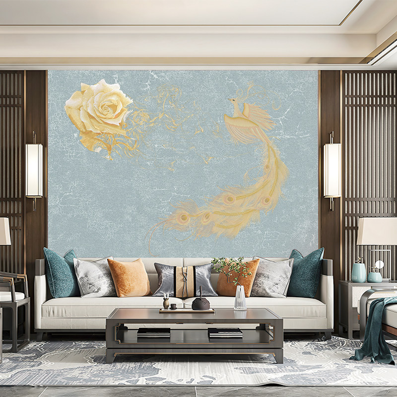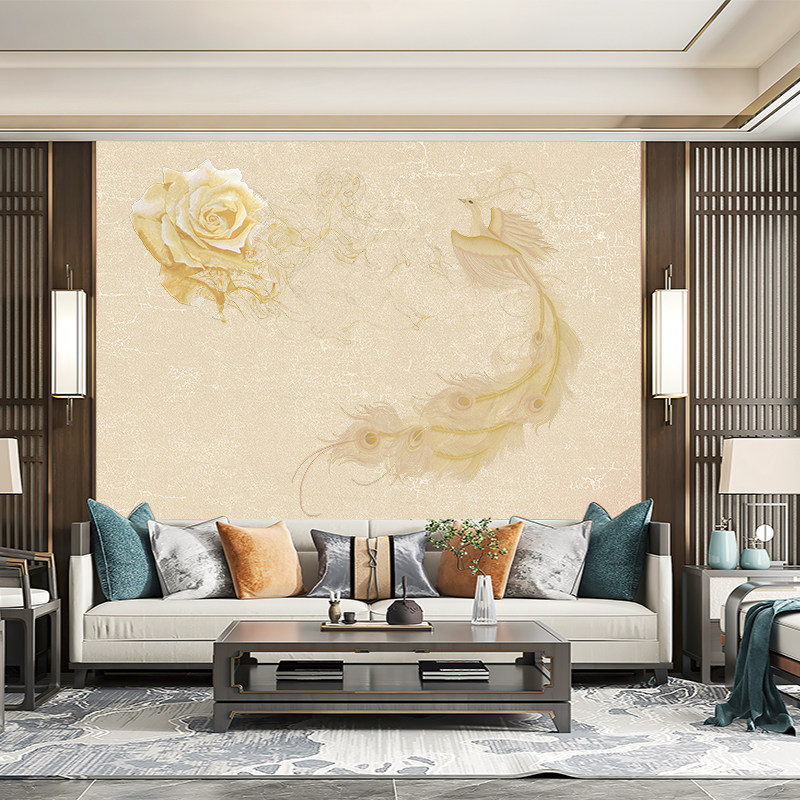 独绣刺绣无缝壁布凤凰时光流逝客厅沙发背景墙布新中式刺绣背景