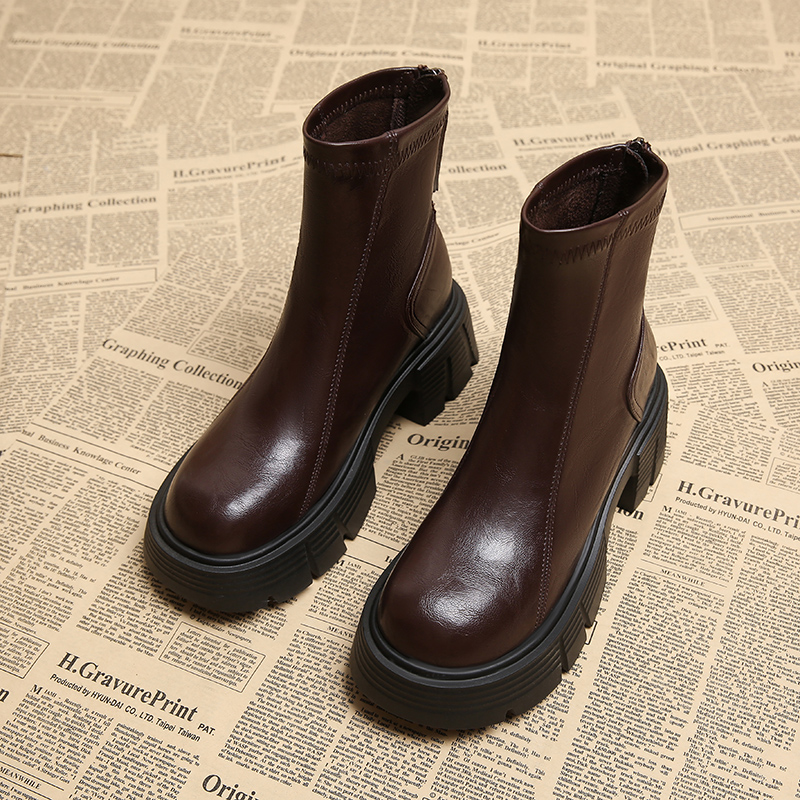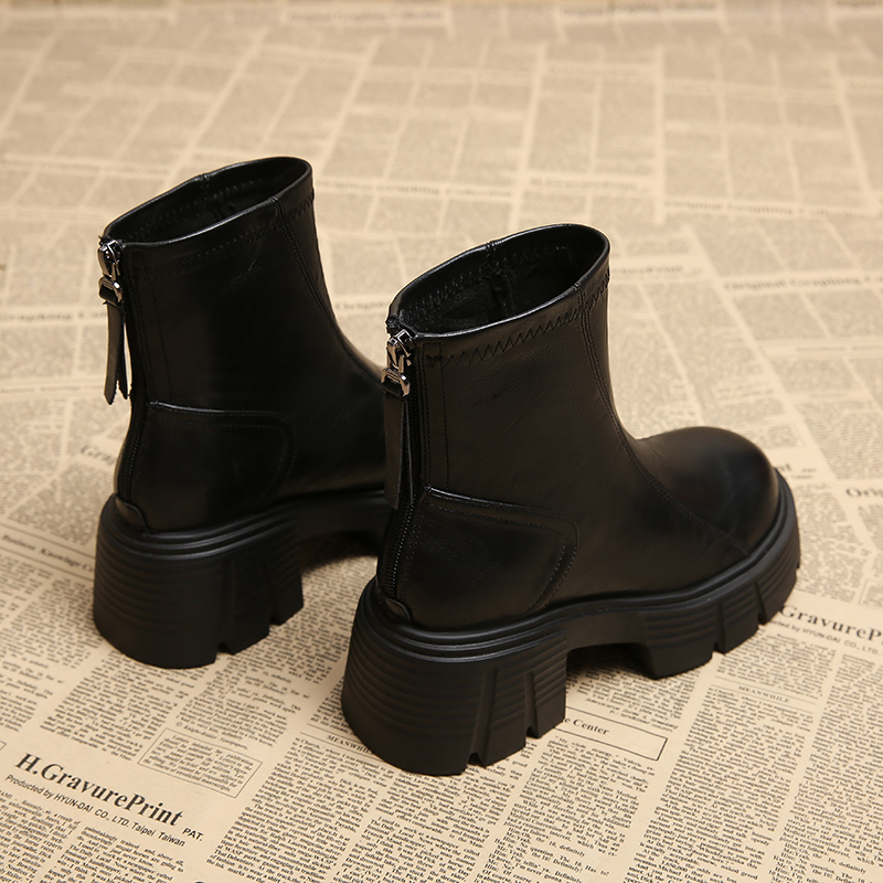 品牌真皮厚底英伦风马丁靴女2025年新款秋冬加绒瘦瘦粗跟高跟短靴
