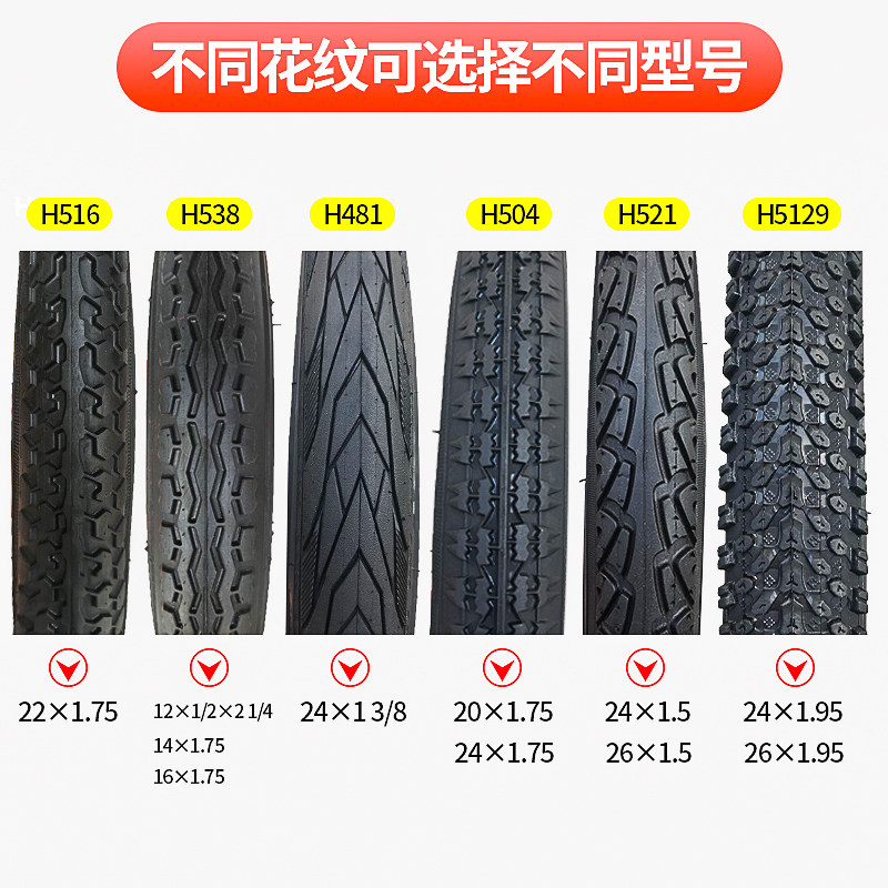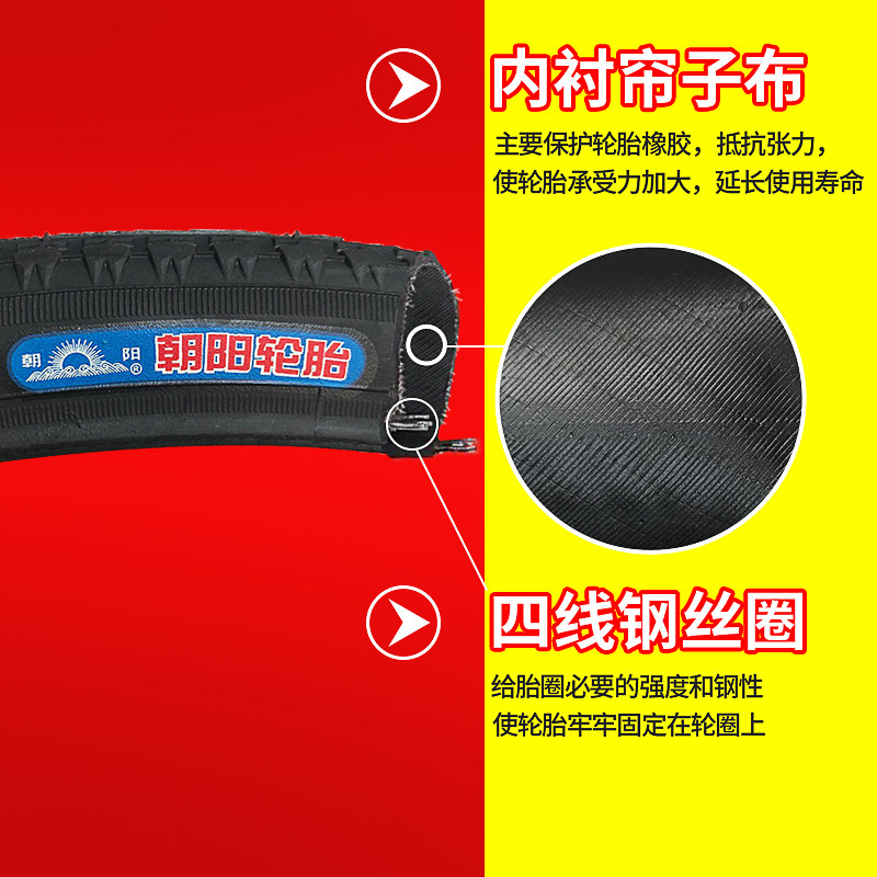 朝阳自行车轮胎12/14/16/20/24/26寸X1.50/1.75/1.95山地车内外胎